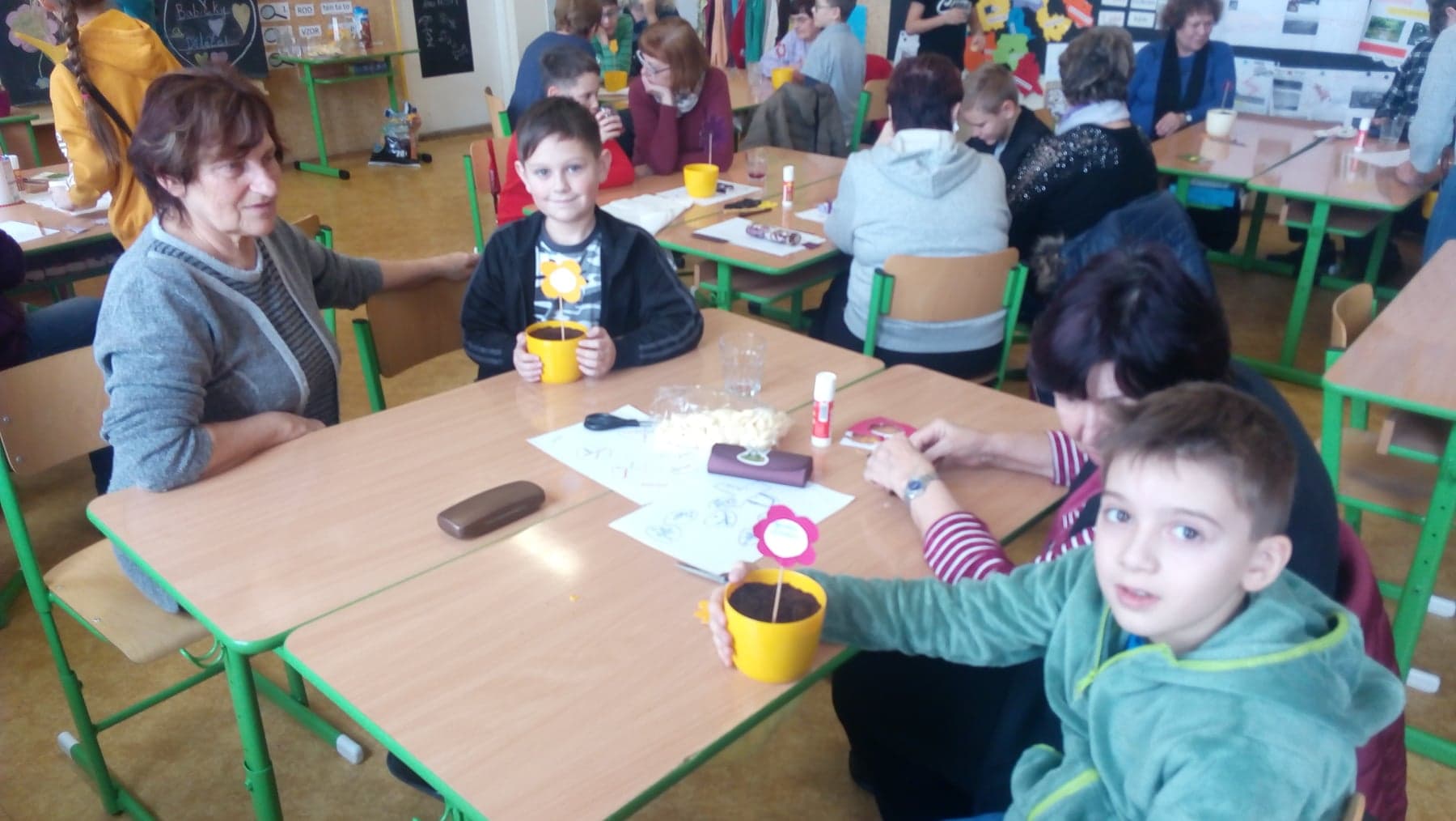 Trávit chvilky s babičkou a dědou je prima. Na středeční odpoledne jsme si je tedy pozvali do třídy. Během hrání piškvorek prarodiče zavzpomínali na jejich oblíbené hry, společně s vnoučaty vytvořili zápich do květináče a zaseli jednu z bylinek.