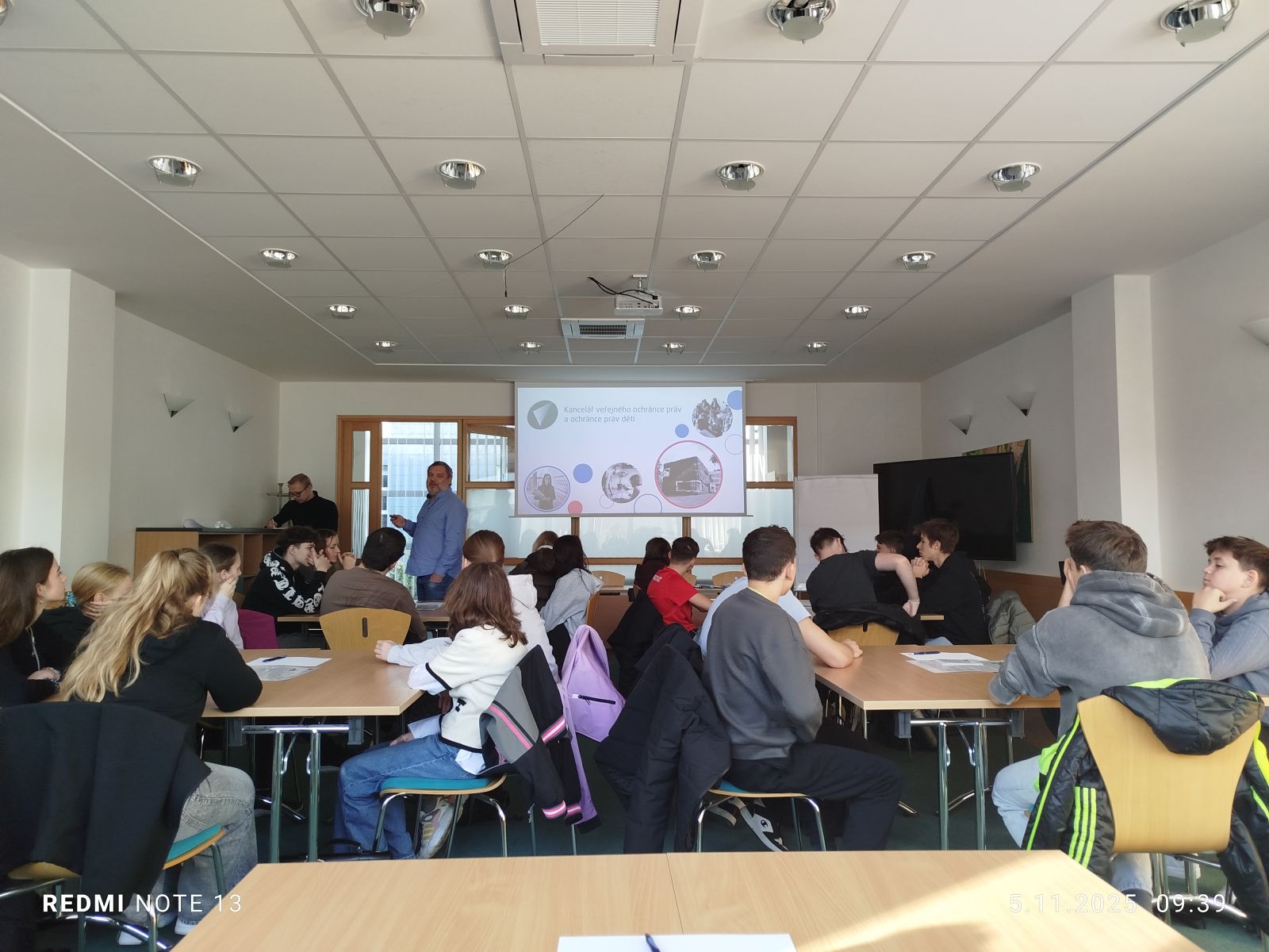 Ve středu 5. listopadu se žáci 9. A zúčastnili exkurze do Kanceláře veřejného ochránce práv v Brně. Cílem návštěvy bylo seznámit se s činností instituce, která pomáhá lidem při ochraně jejich práv a dohlíží na správné fungování úřadů.