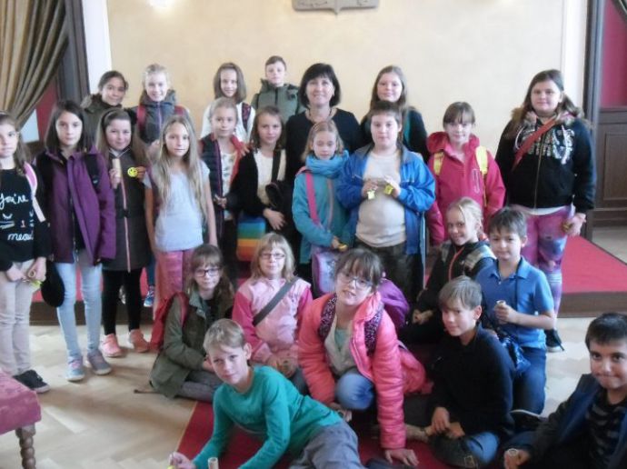 Nejdříve jsme se naladili bezva koncertem v sále Společenského domu, poté, posilněni svačinou jsme se vydali na návštěvu za paní starostkou. Prohlédli jsme si budovu radnice, paní starostka nás pozvala do své kanceláře, povyprávěla nám o své práci a ochotně odpovídala na všechny naše otázky. Navštívili jsme také krásnou obřadní síň.