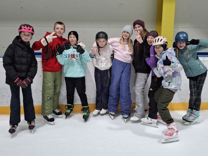 V pátek 28. 11. Žáci šestých tříd strávili příjemné dopoledne na zimním stadionu v Moutnicích. Přes bázlivější začátky se brzy téměř všichni rozbruslili a užili si čas volným ježděním s kamarády nebo hraním hokeje.