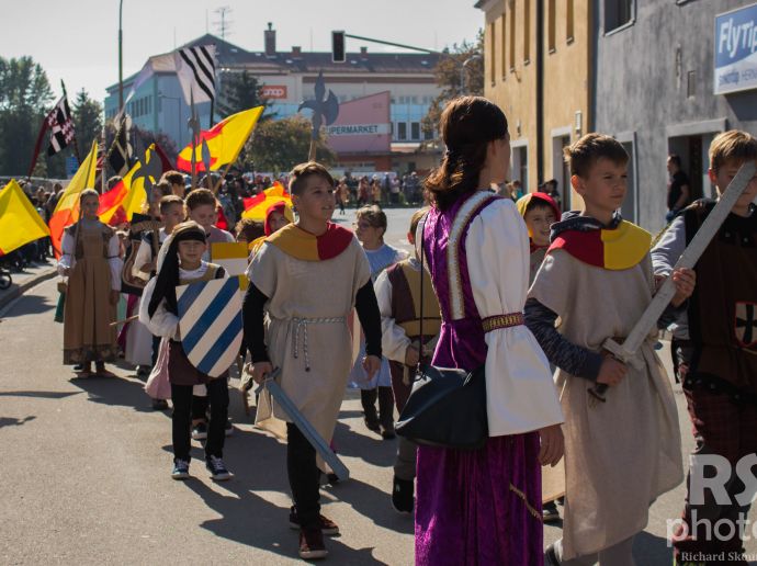 I letos se naši žáci zúčastnili historického průvodu na Burčákových slavnostech. V dobových kostýmech s vlajkami, meči, halapartnou nebo erbem jsme společně přivítali a pozdravili návštěvníky slavností. Řazení do tak dlouhého průvodu trvá téměř hodinu, ale ten zážitek a jásání všech lidí okolo za to stojí. Zase za rok - Ať žije Burčáková unie!