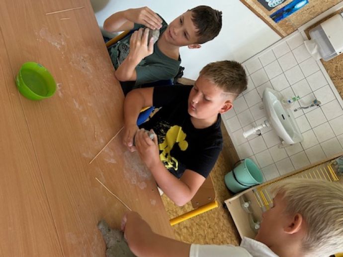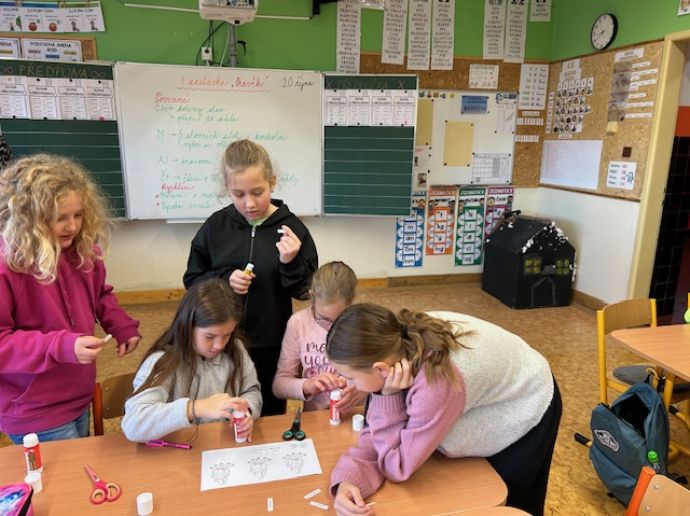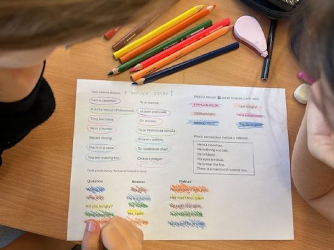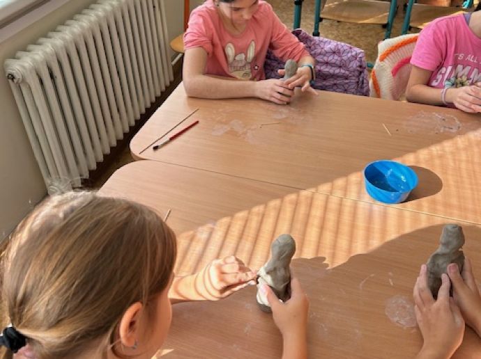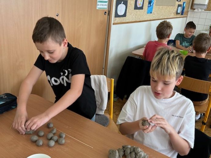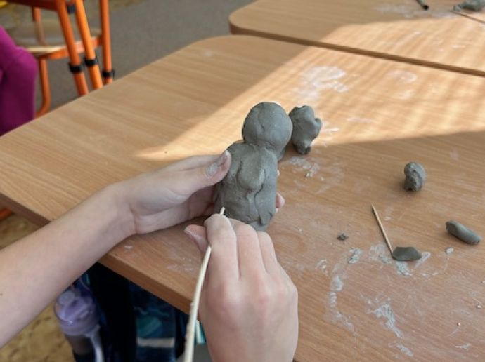 Děti ze 4. B mají tento školní rok kolektivní celoroční hru „Cestujeme časem“. První zastávkou bylo období pravěku. A s čím jiným spojit toto období než s lovci mamutů a Věstonickou venuší? A tak jsme počítali úlovky, zjišťovali, jestli by se nám mamut vešel do třídy, a žasli nad stářím a cenou pravěké sošky. Závěrečnou výzvou pak bylo překonat určitý ostych a svou vlastní venuši si vymodelovat.