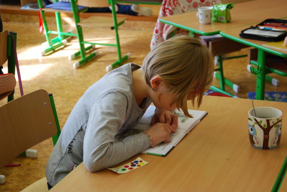 V jednotlivých dílnách si na začátku povídáme, pak se rozejdeme po třídě, najdeme si pohodlné místečko a dáme se do čtení. Každý sám, svým tempem.