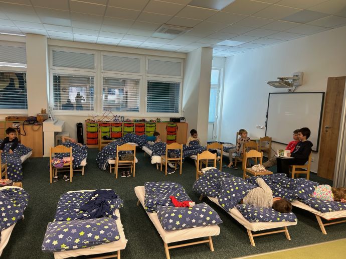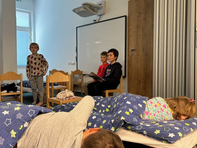 Vybraní čtenáři ze 4. ročníku mají za sebou první ze čtyř etap akce „Čteme předškolákům před spaním“. Přes počáteční nervozitu si děti odnesly jen samá pozitiva. Čtení zvládly bez problémů, v obou školkách měly velmi hodné a pozorné posluchače, zkrátka si to všichni užili. A hláška dne? To když se jeden šikovný předškoláček na konci zeptal: „A kde bude spinkat vy?“