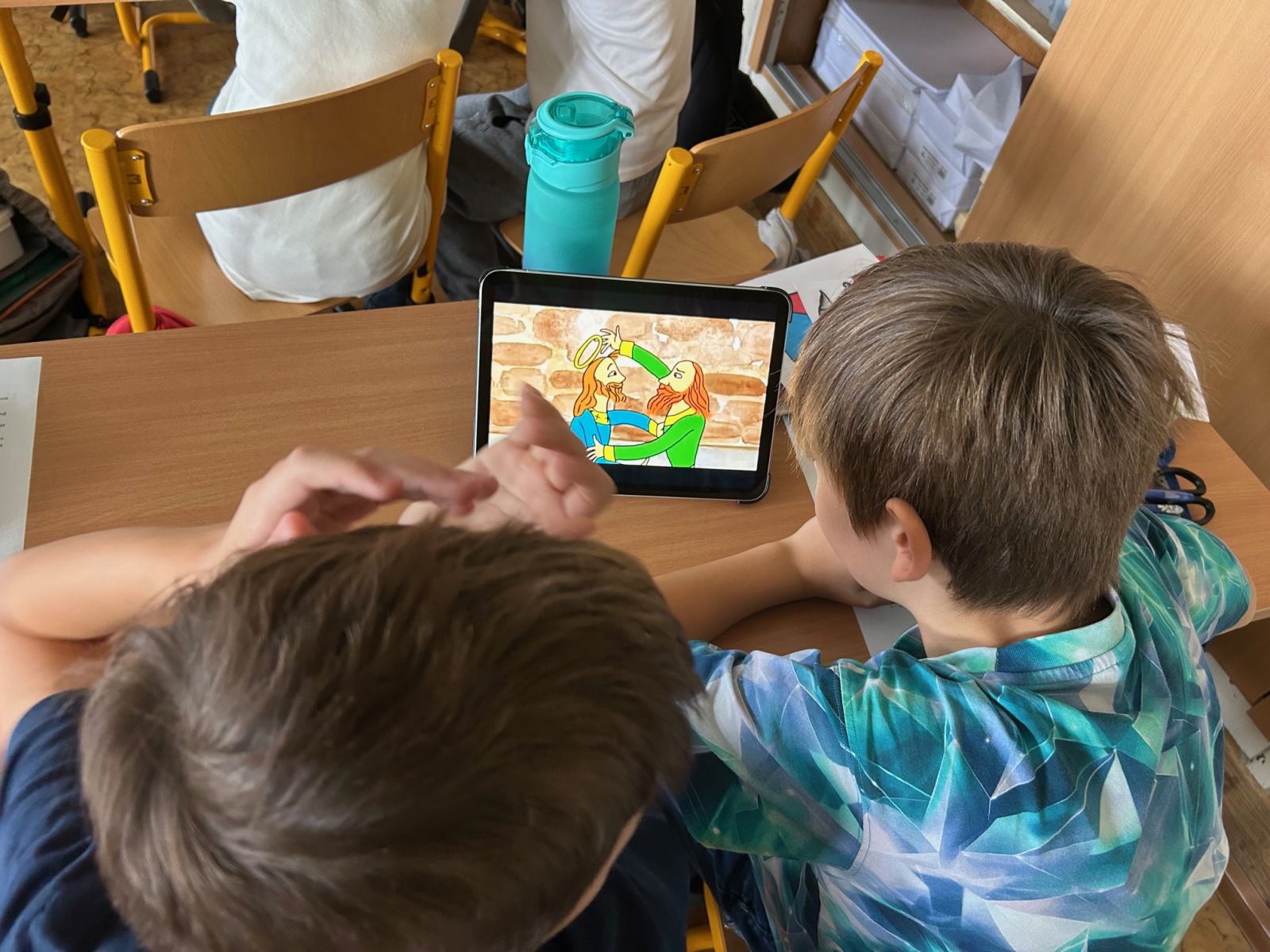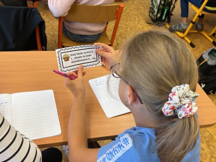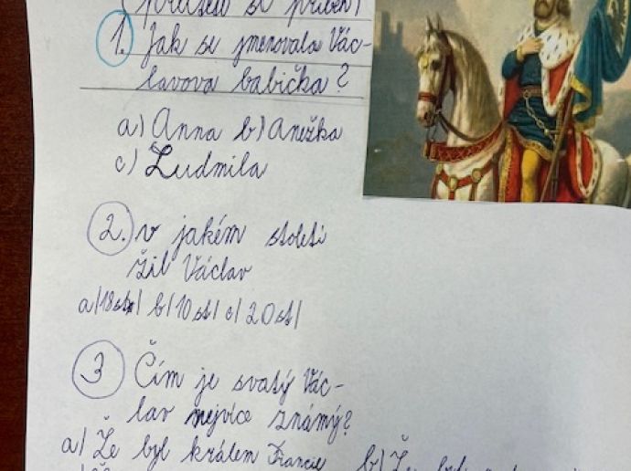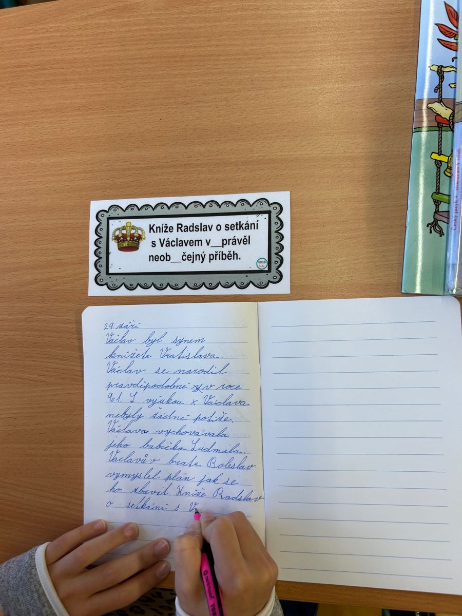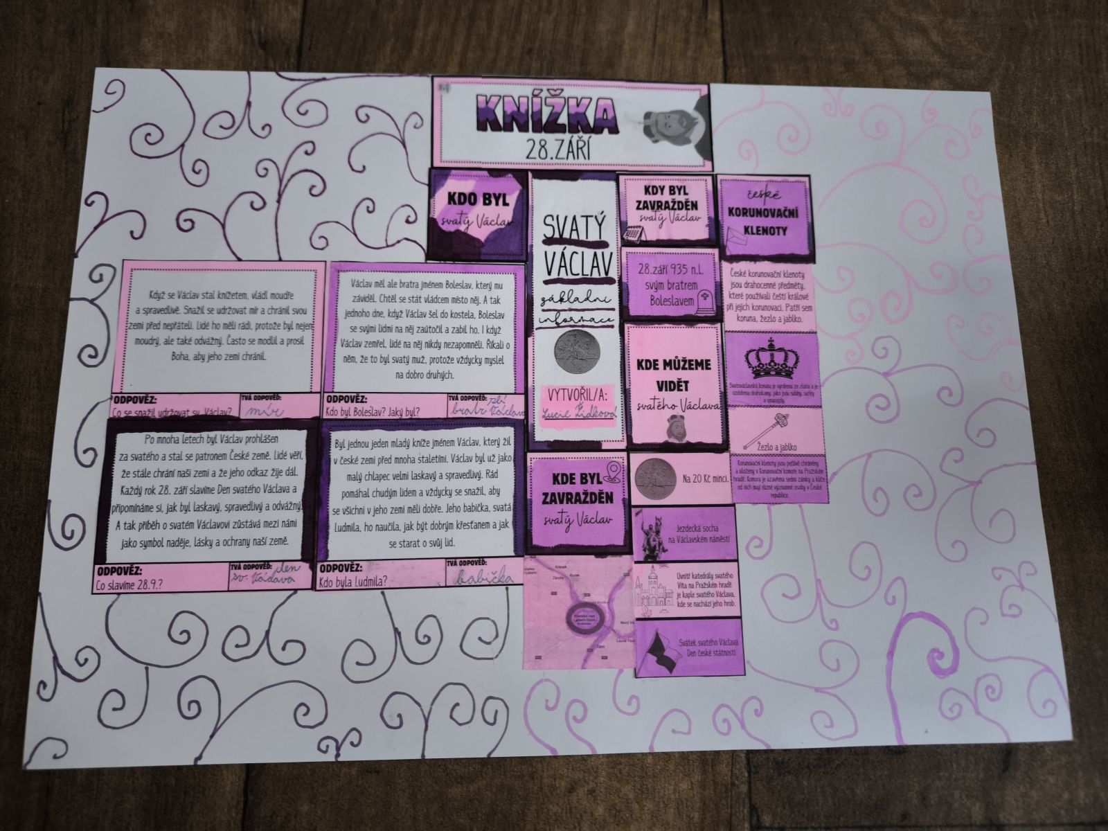V neděli jsme si připomněli Den české státnosti. Je to významný svátek, a tak jsme se i my ve škole pověnovali patronovi naší země, knížeti Václavovi. Informace o tomto světci ukryté v různých šifrovačkách jsme doplňovali do textu a pomocí tabletů je poté porovnali s komiksovým zpracováním pověsti. Starší žáci si pak pro své spolužáky připravili několik kvízů.