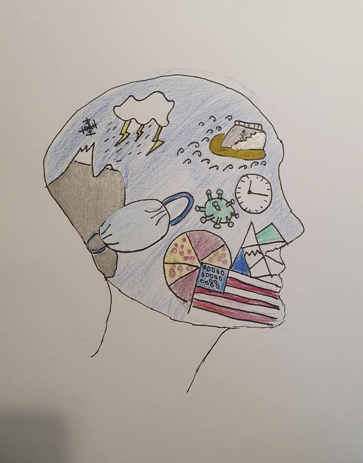 Ve výtvarné výchově se žáci 2.stupně zamýšleli nad svými myšlenkami. Vybrané obrázky nám ukazují, na co v této době hlavně myslí.