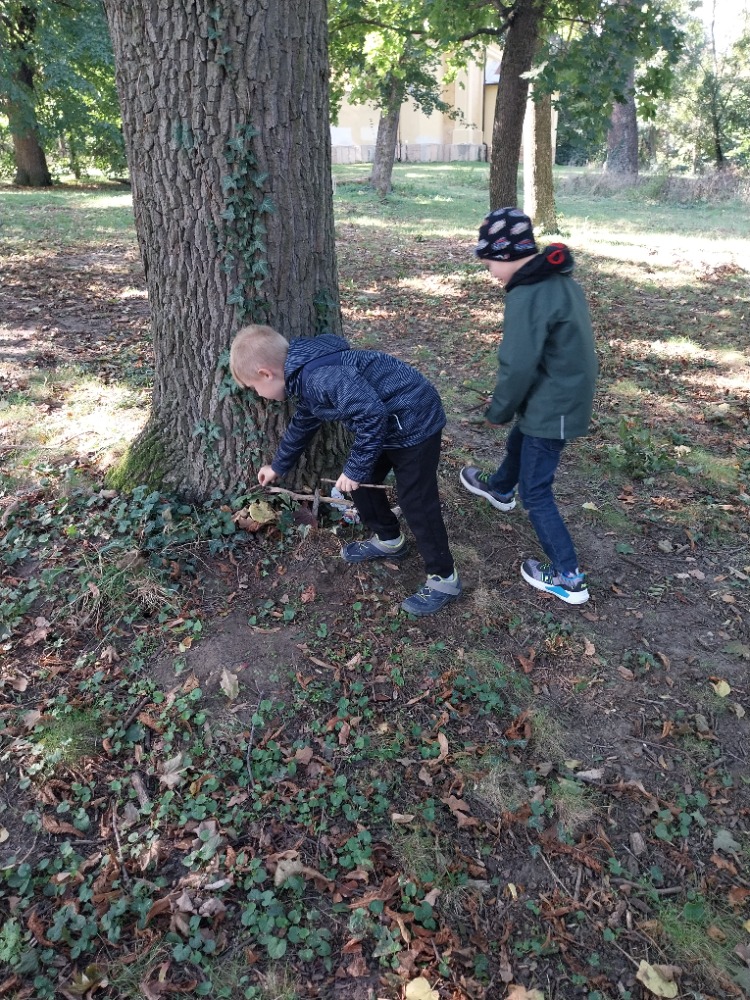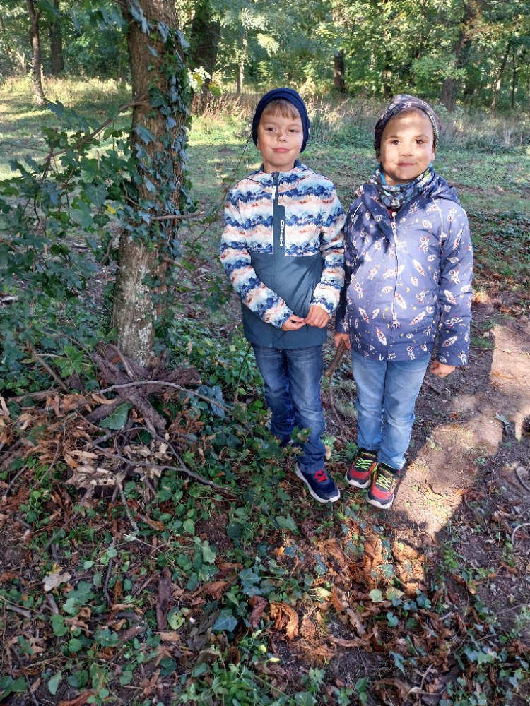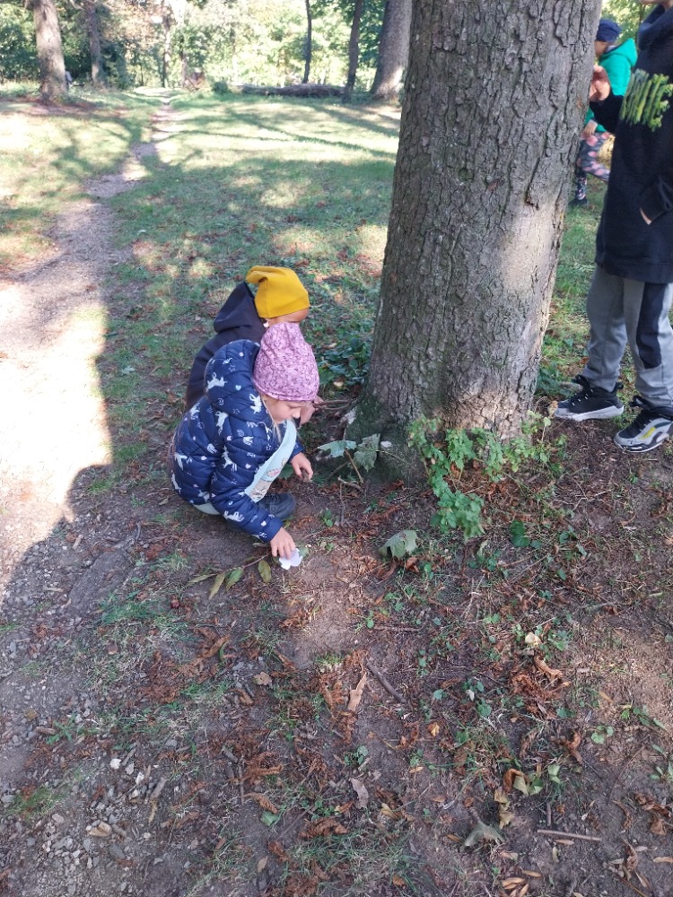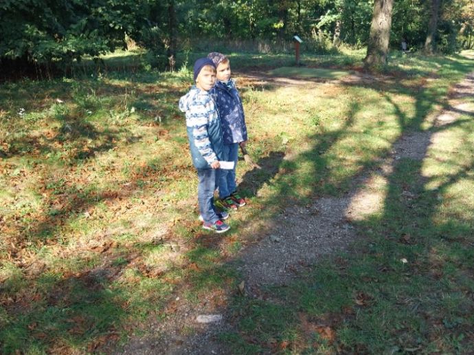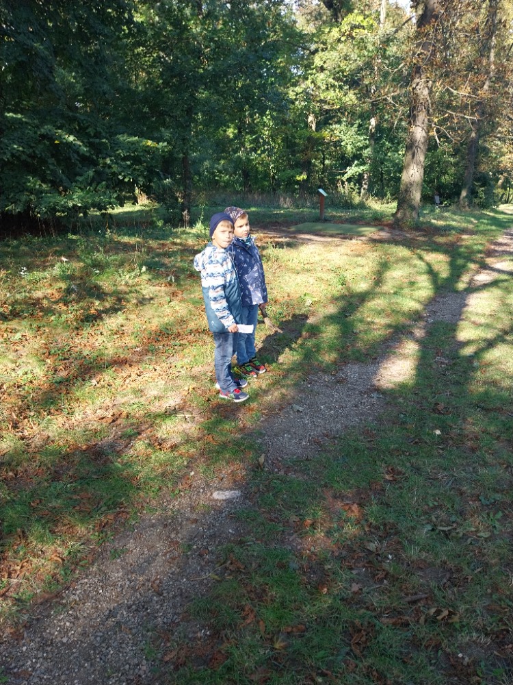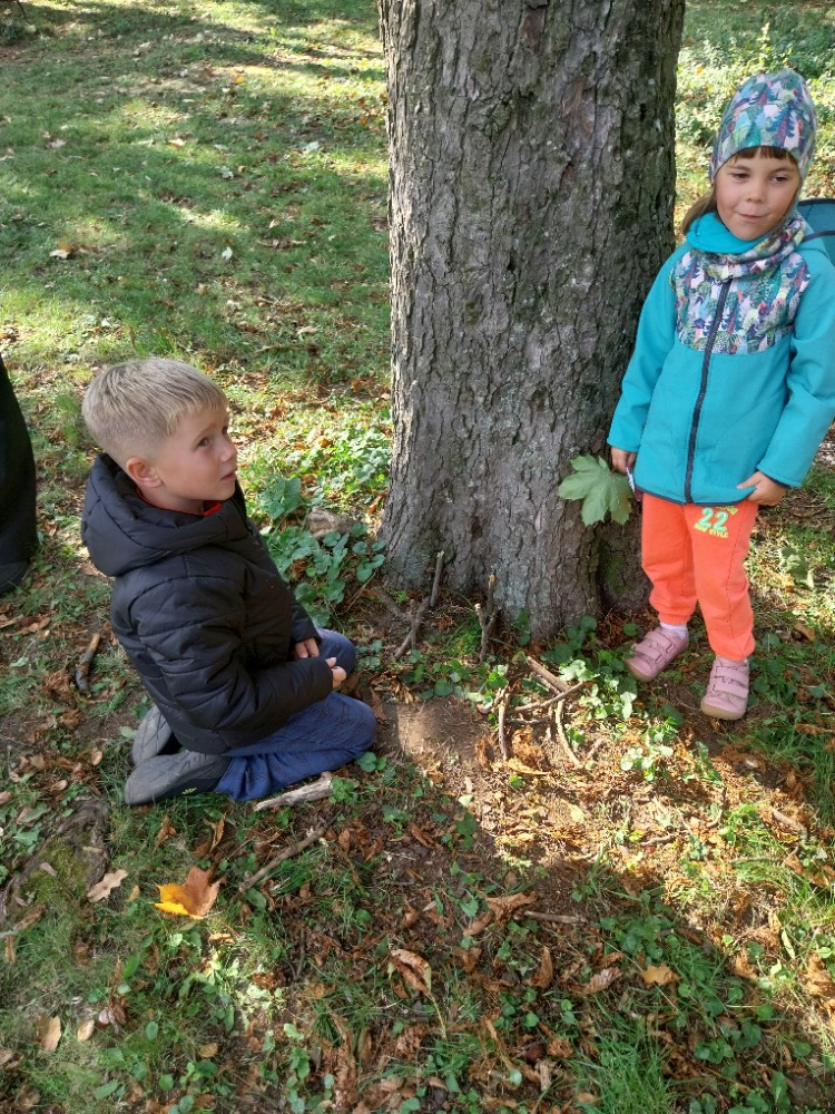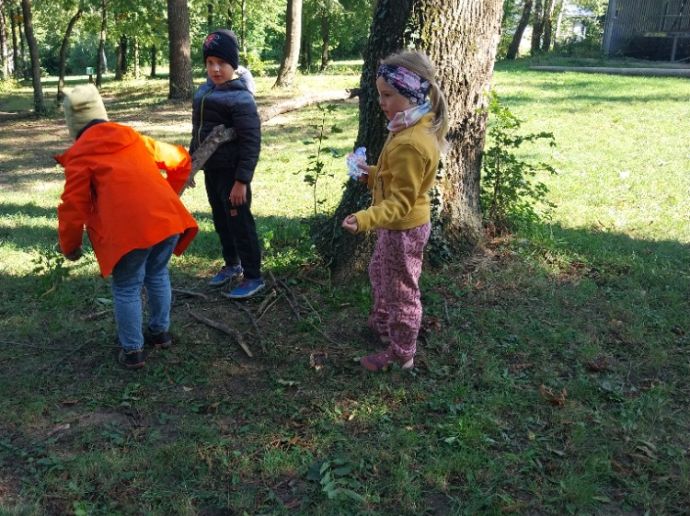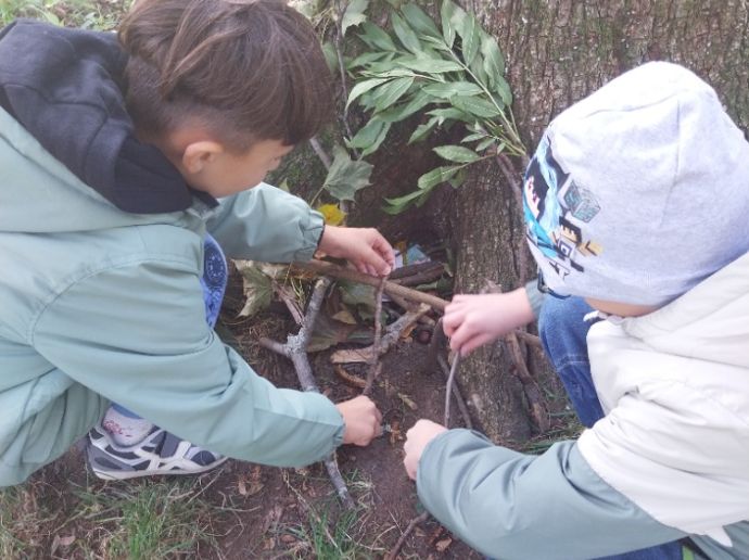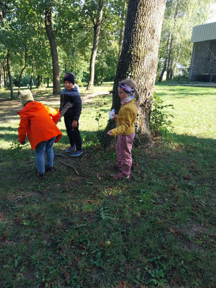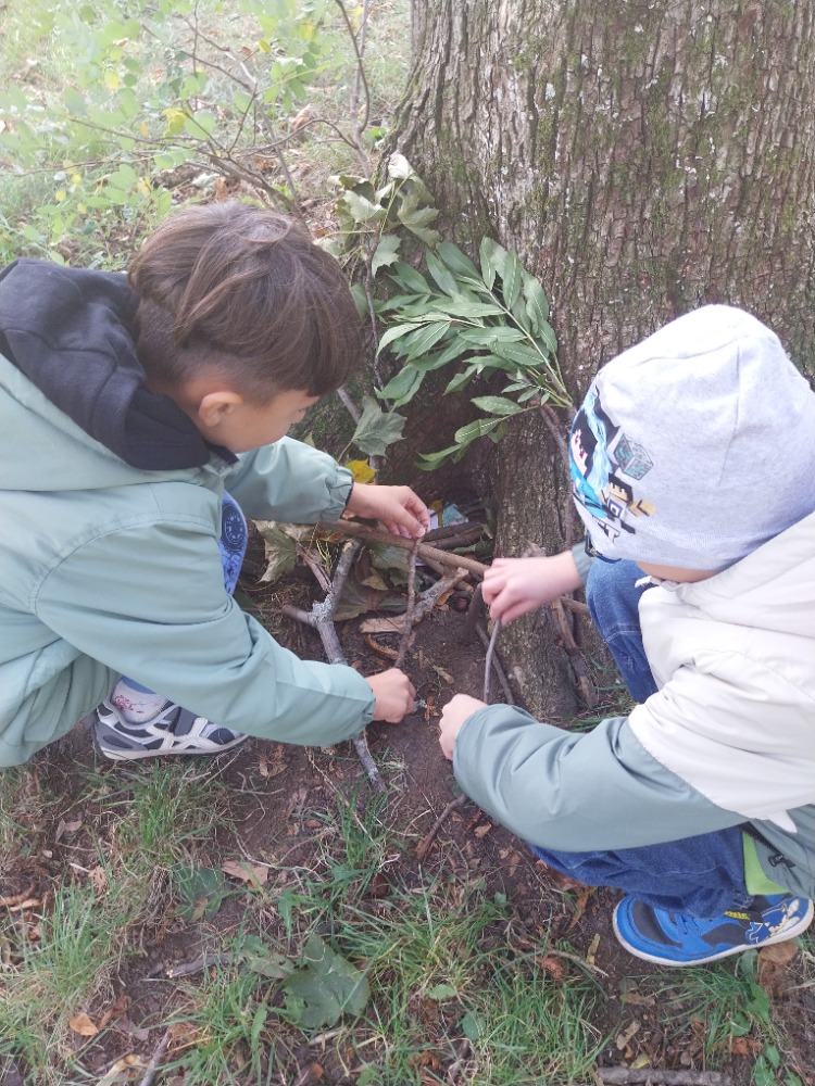Prvňáčci ze školní družiny se vydali na Křížový kopec, kde tvořili domečky pro své skřítky.