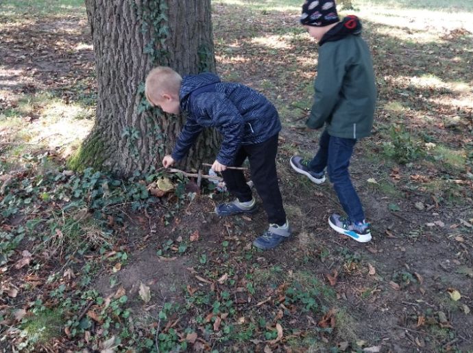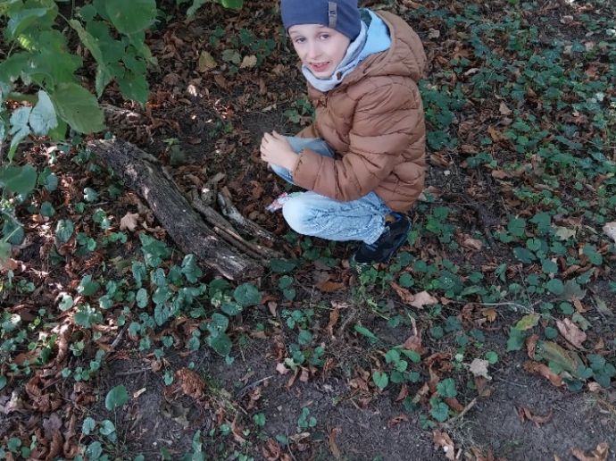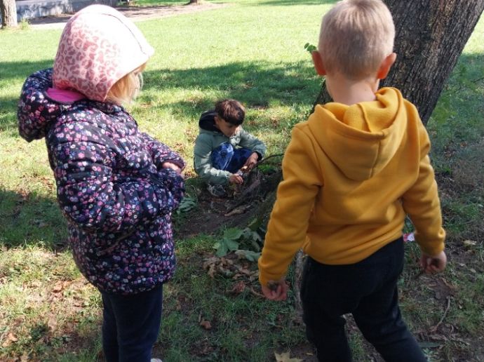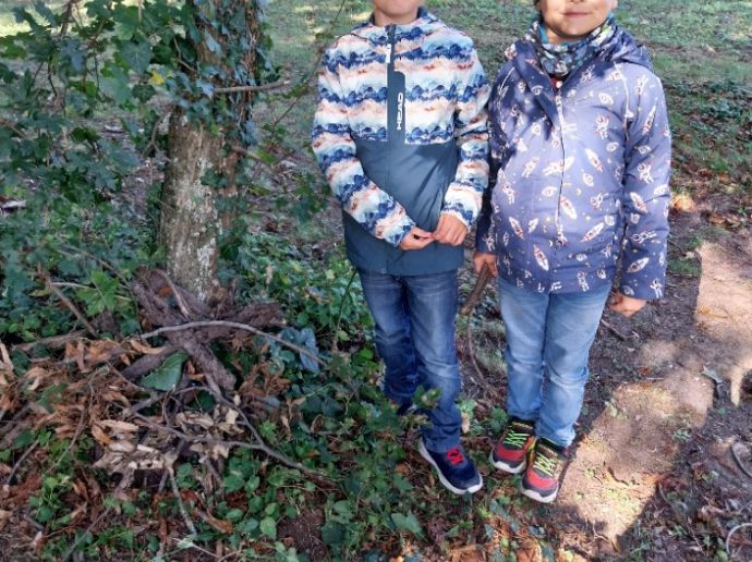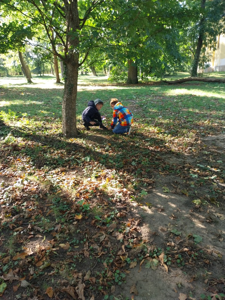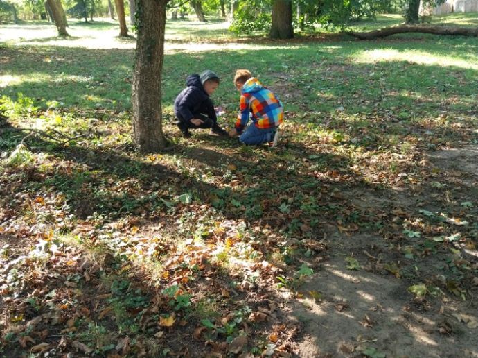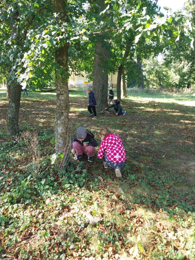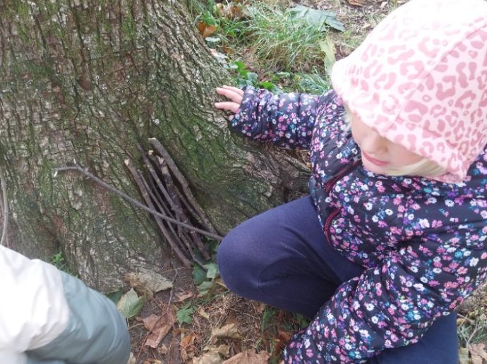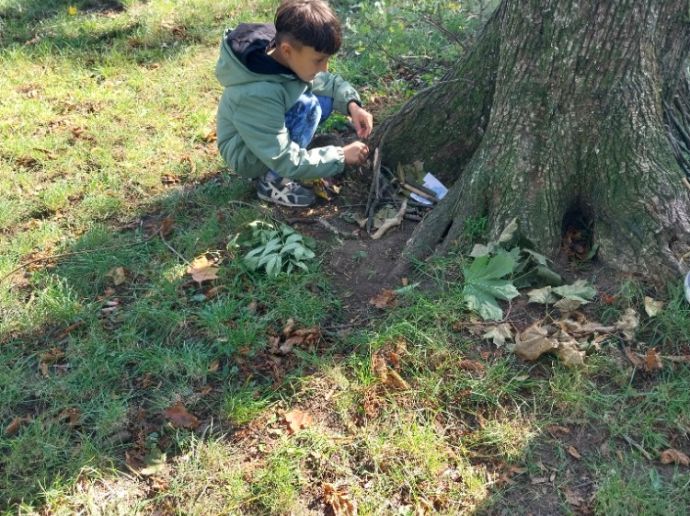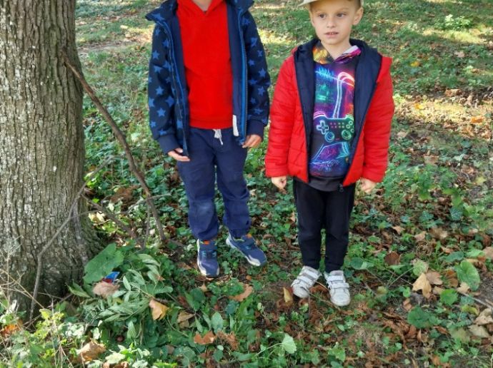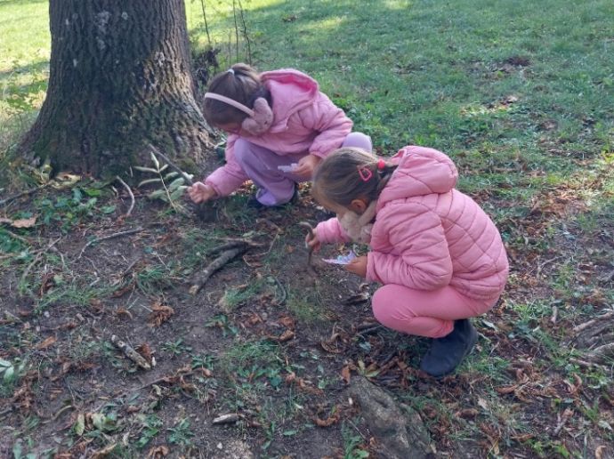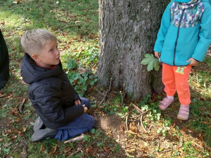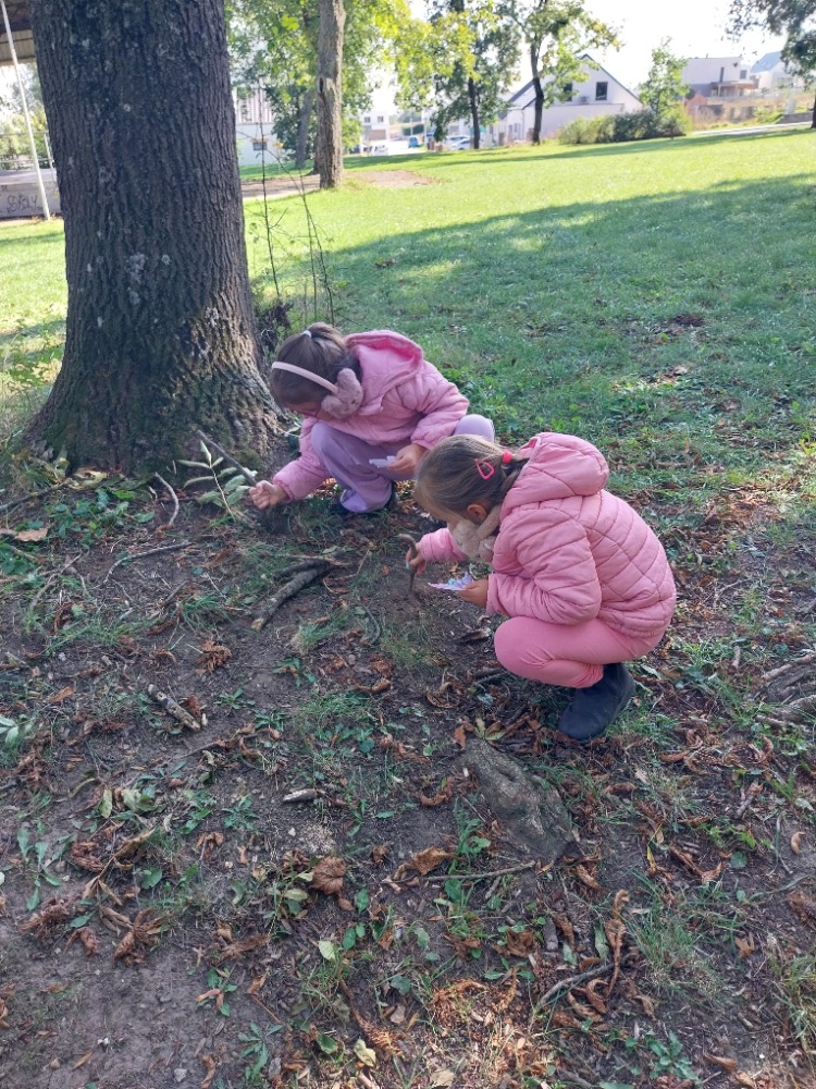 Prvňáčci ze školní družiny se vydali na Křížový kopec, kde tvořili domečky pro své skřítky.