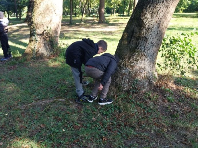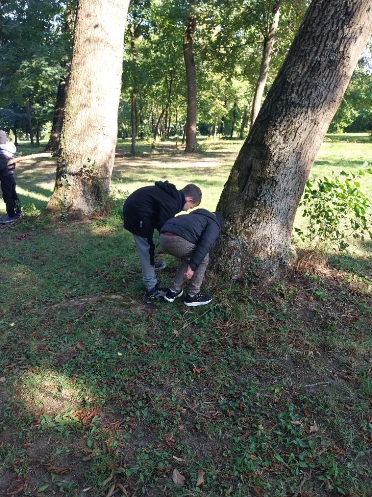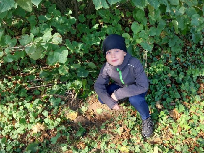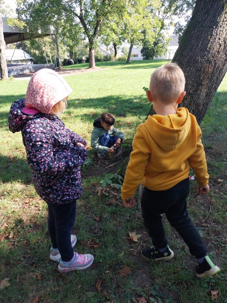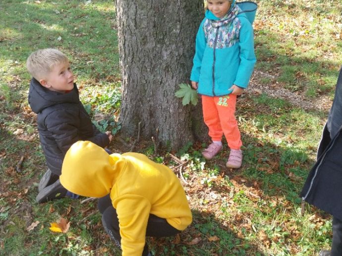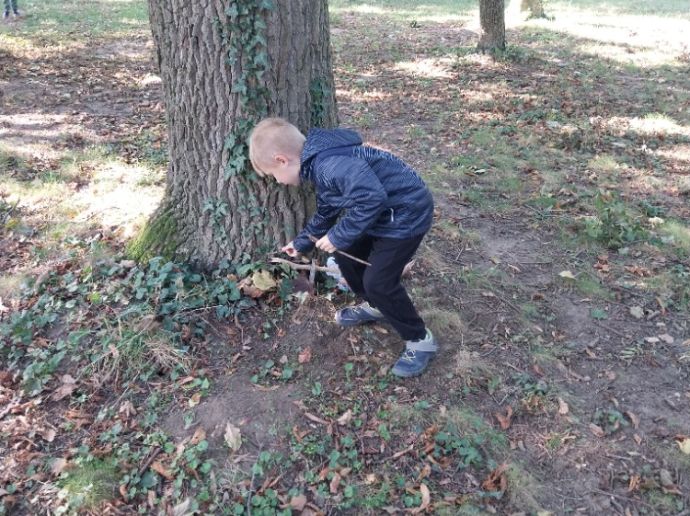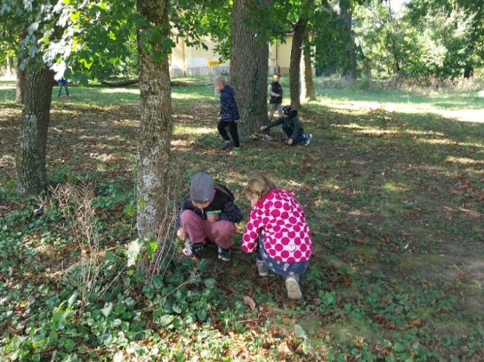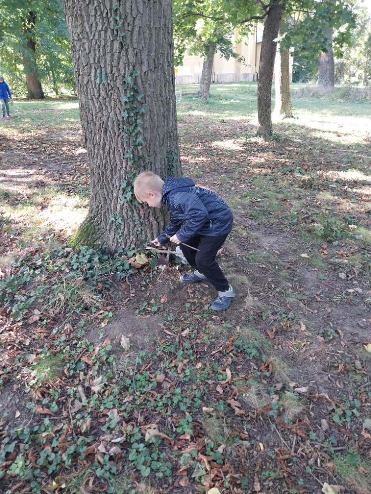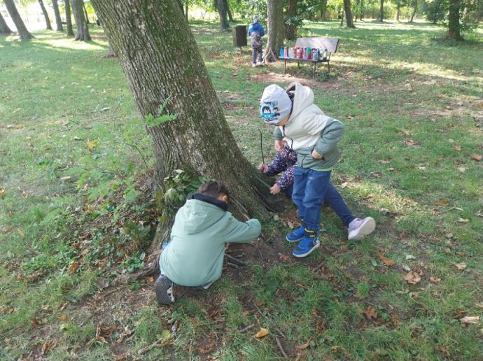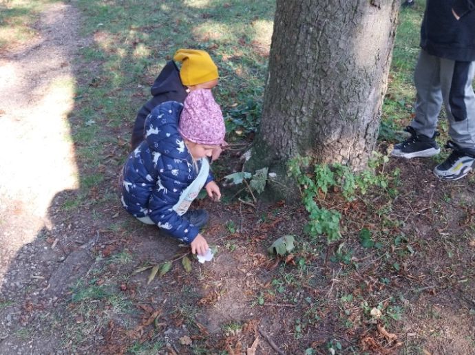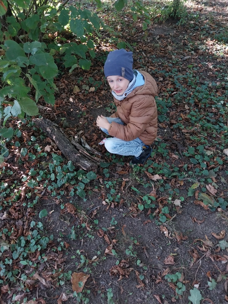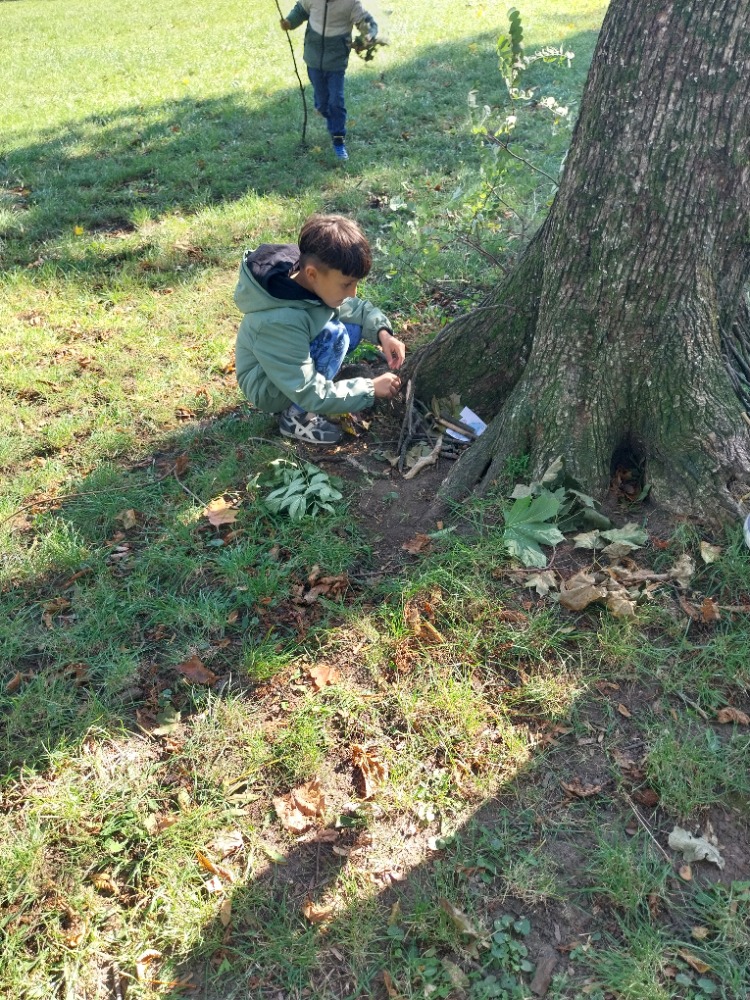 Prvňáčci ze školní družiny se vydali na Křížový kopec, kde tvořili domečky pro své skřítky.