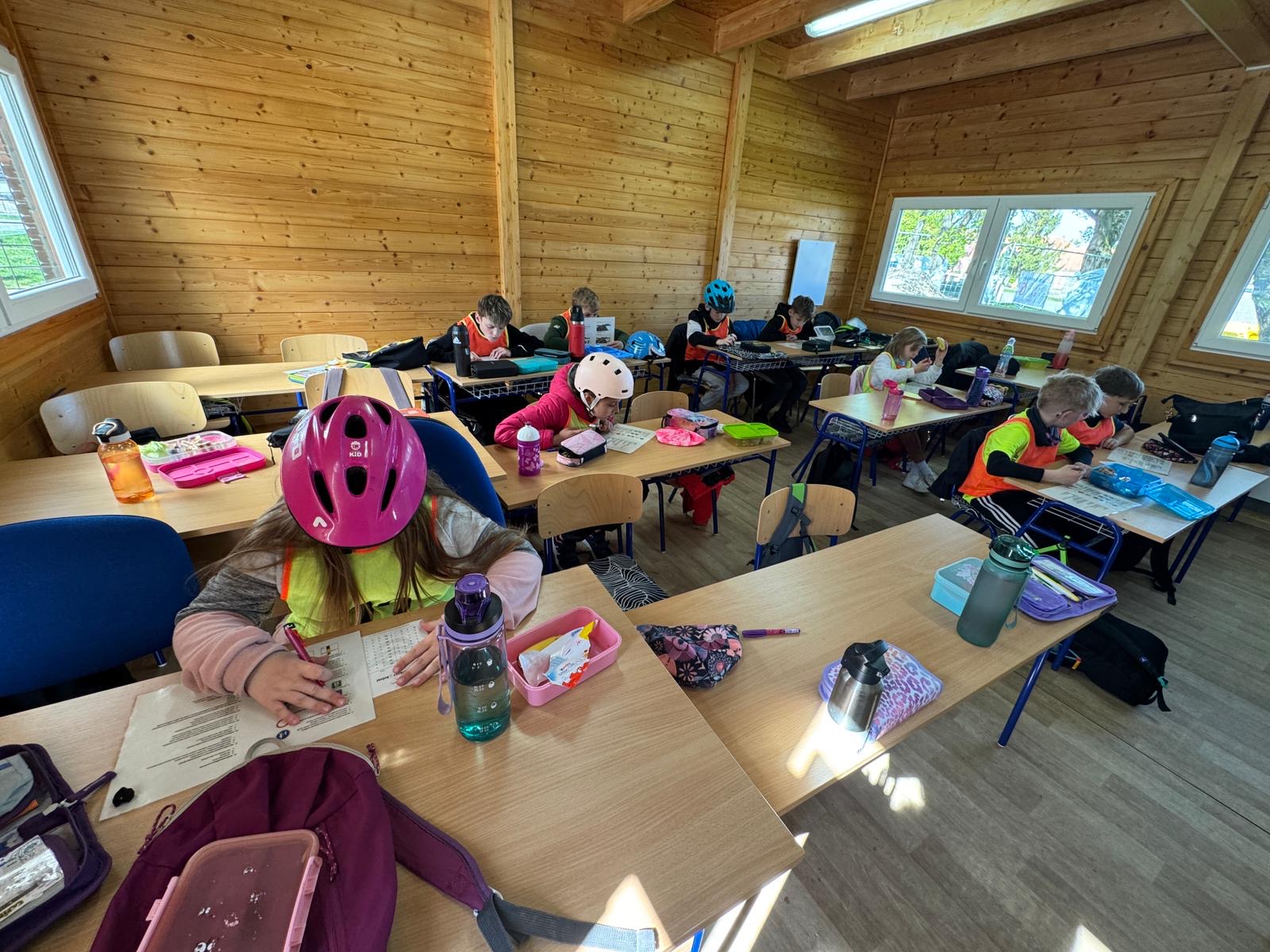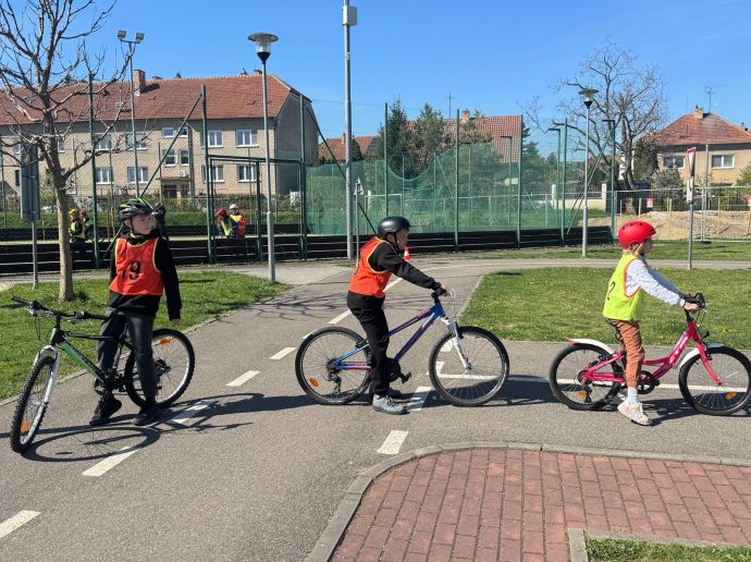 Žáci 4. tříd mají úspěšně za sebou druhé kolo dopravní výchovy. A že to byla pořádná jízda! Nejprve si děti osvěžily paměť – zopakovaly si důležité dopravní značky a základní pravidla silničního provozu, bez kterých to na silnici prostě nejde. Pak už přišla na řadu jízda zručnosti, kde žáci předvedli skvělý balanc a ovládání kola při překonávání překážek. Vše, co se naučili teoreticky, si následně vyzkoušeli také v praxi. Trénovali řešení křižovatek, dávání přednosti i bezpečné odbočování. Dopoledne vždy vyvrcholilo závěrečným písemným testem. Kdo prokázal, že má pravidla opravdu v malíčku, odnesl si domů zaslouženou a hrdou odměnu – svůj vůbec první Průkaz cyklisty!