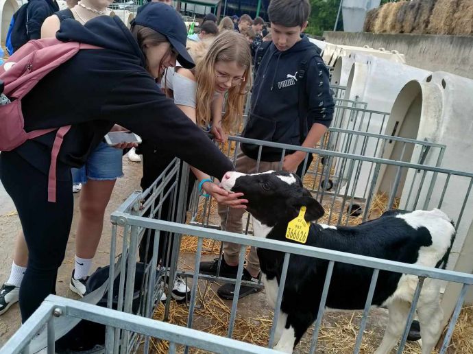 Na statku si během dvou hodin mohli prohlédnout všechny stáje mléčného skotu od telat, jalovic až po dojnice. Také obdivovali mnohem statnější kusy skotu masného vážící až jeden a půl tuny.