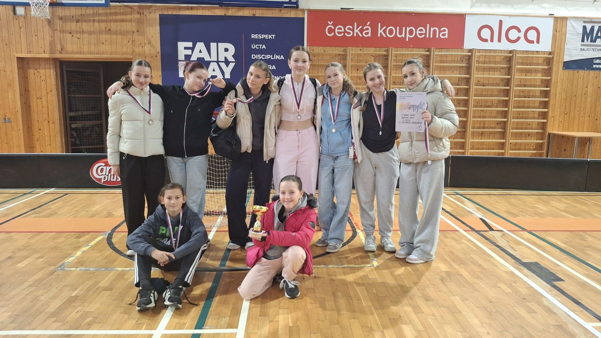 Starší žákyně (8. - 9. ročník) si ve čtvrtek 13. 11. přivezly z okresního kola ve florbale v Břeclavi krásné 3. místo. Holkám kvůli malému počtu pomohly k jejich výkonu i dvě šesťačky. Všem reprezentantkám, konkrétně Markétě Židkové, Anetě Rylové, Danči Holíkové, Zuzce Brychtové, Anežce Jelínkové a Týně Škarpové, moc děkujeme a gratulujeme.