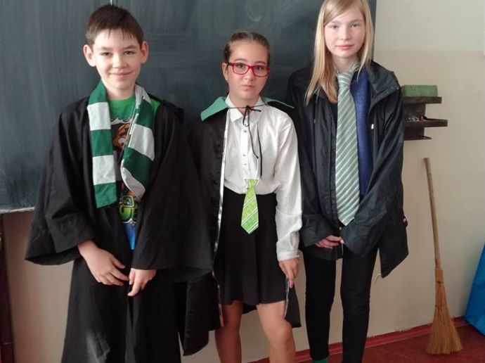 Děkujeme především žákovi 9.A Šimonovi Charouškovi, který celou akci vymyslel, naplánoval a svým nadšením přiměl učitelský sbor k tomu, aby mu Harry Potter week pomohli zrealizovat.