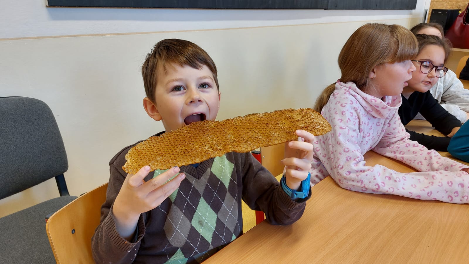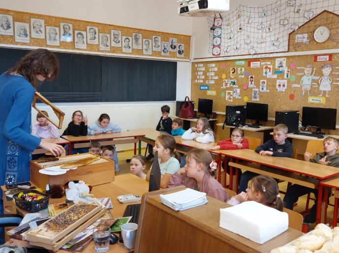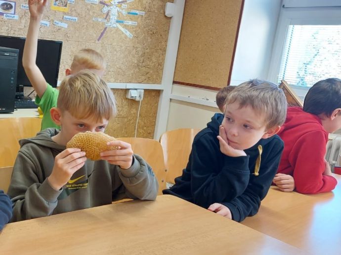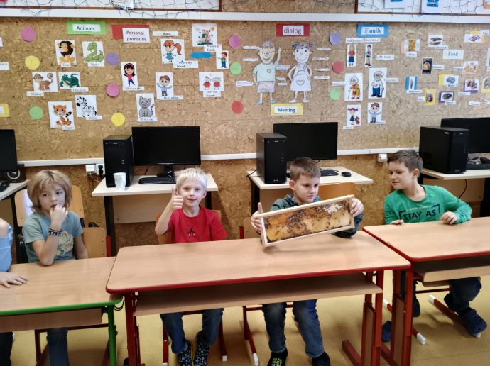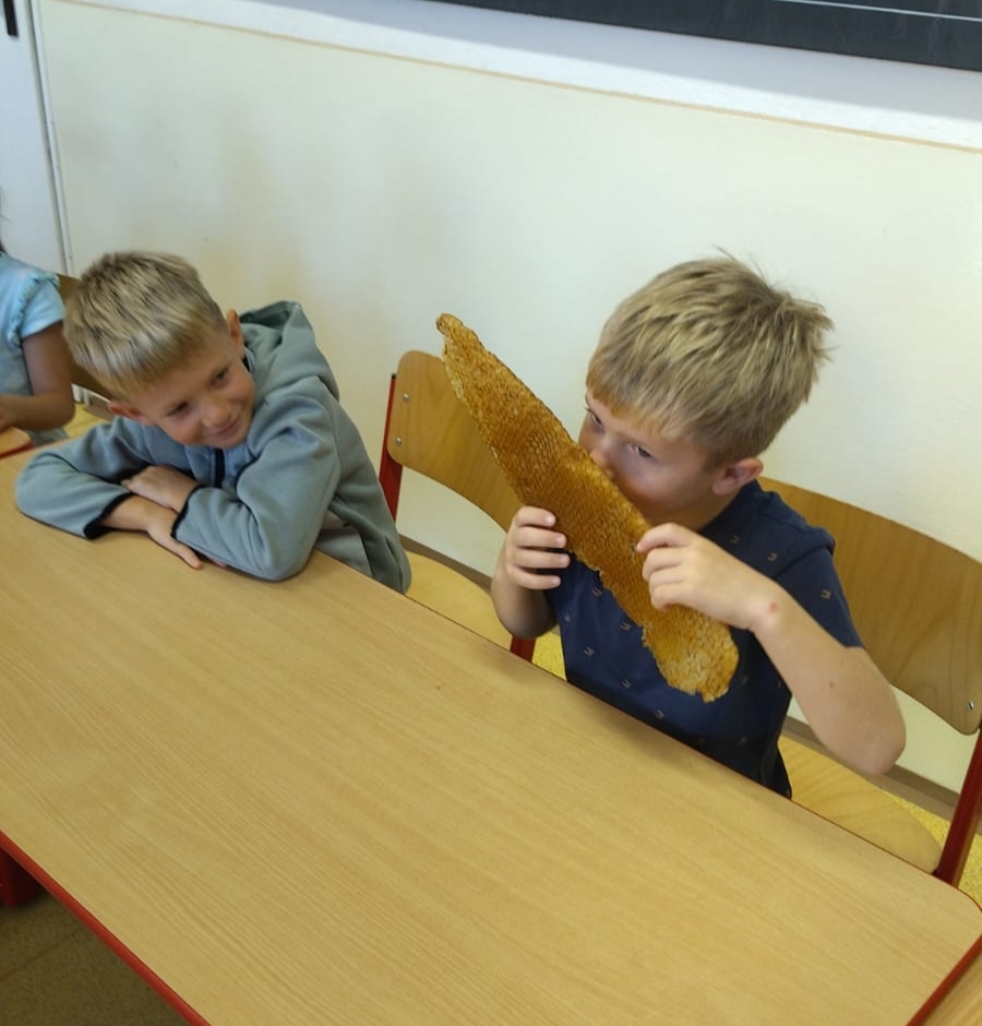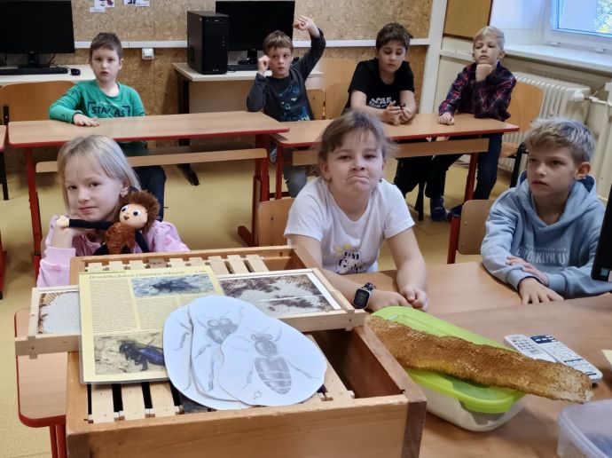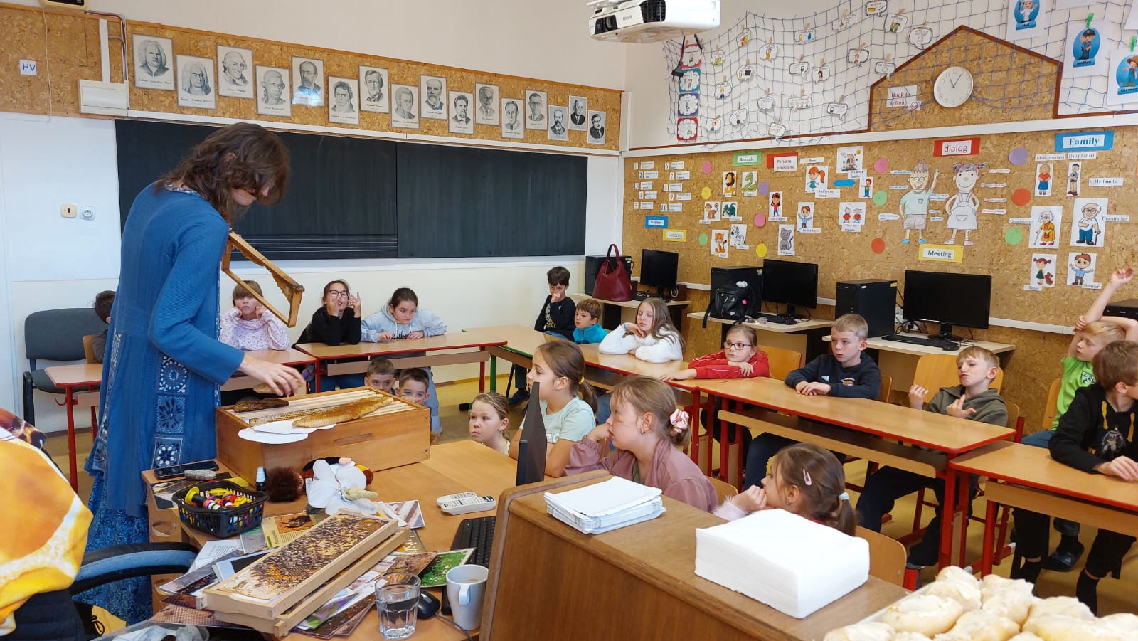 Ve středu 5. 11. a ve čtvrtek 6. 11. si žáci 1. - 3. tříd užili opravdu příjemné dopoledne. Do školy k nám přijela paní včelařka, která dětem povyprávěla o životě včel, výrobě medu a o tom, proč jsou včely pro přírodu důležité. Součástí programu byla samozřejmě medová svačinka - děti si pochutnaly na pečivu s voňavým medem a některé třídy si uvařily i teplý čajík.