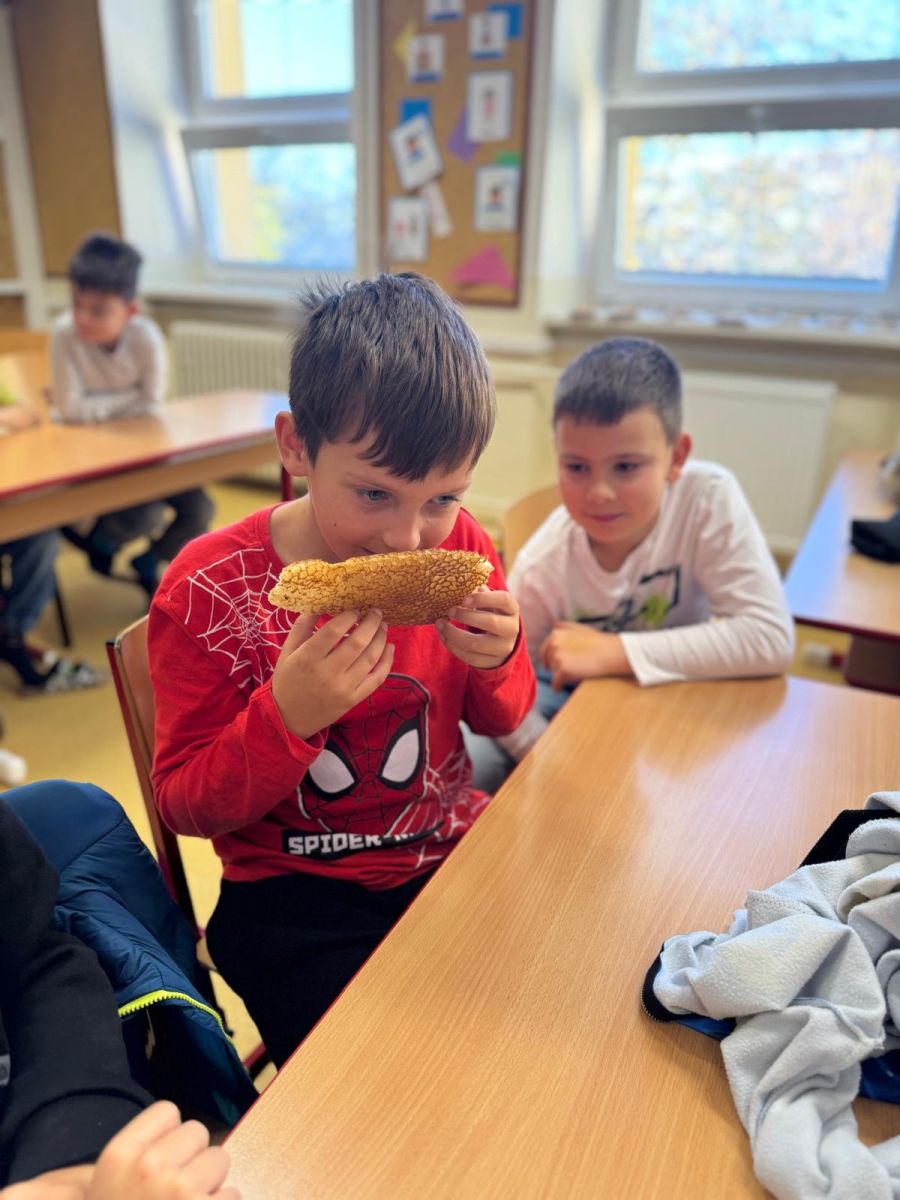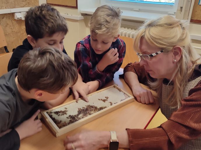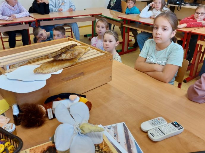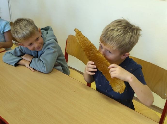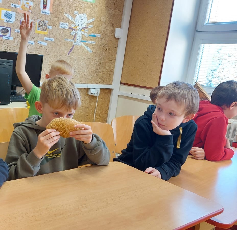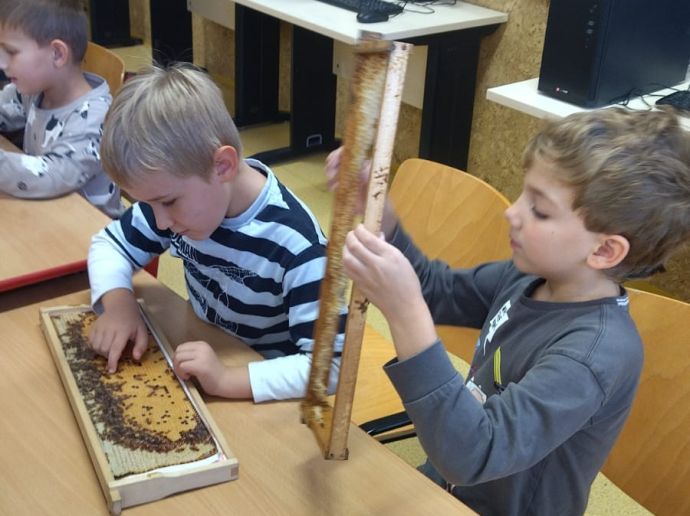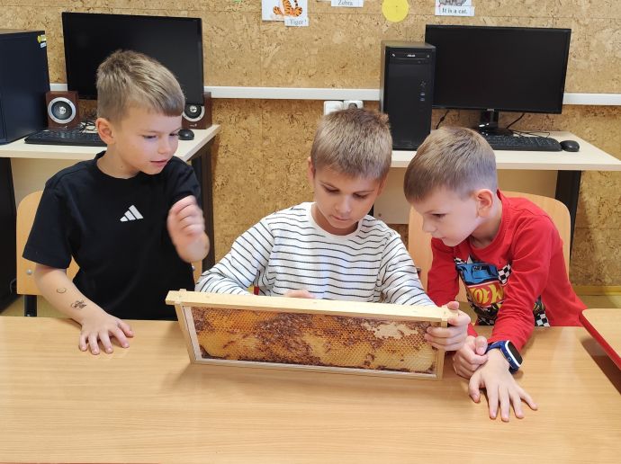 Ve středu 5. 11. a ve čtvrtek 6. 11. si žáci 1. - 3. tříd užili opravdu příjemné dopoledne. Do školy k nám přijela paní včelařka, která dětem povyprávěla o životě včel, výrobě medu a o tom, proč jsou včely pro přírodu důležité. Součástí programu byla samozřejmě medová svačinka - děti si pochutnaly na pečivu s voňavým medem a některé třídy si uvařily i teplý čajík.