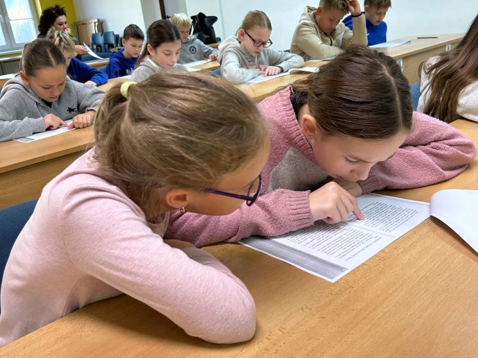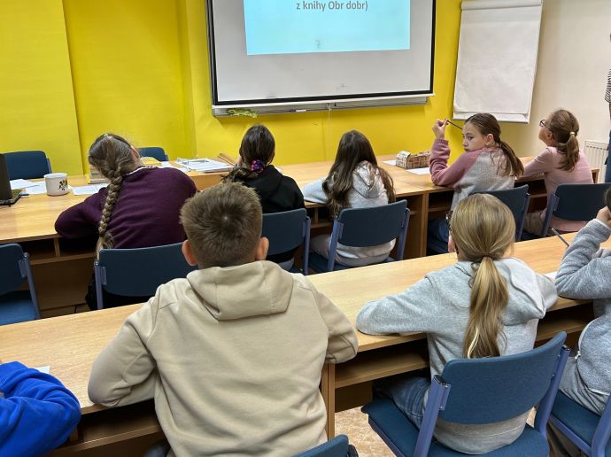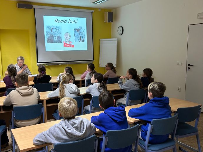 Poutavý autor Roald Dahl dnes nalákal děti na vtipné knížky, jako jsou Karlík a továrna na čokoládu, Matylda, nebo třeba Jirkova zázračná medicína. Zkusili jsme si, kolik nejvíce slov zvládneme složit z písmen CHLEMTOHRD. Nakonec jsme si užili i kousek čtení z knihy tohoto inspirativního autora.