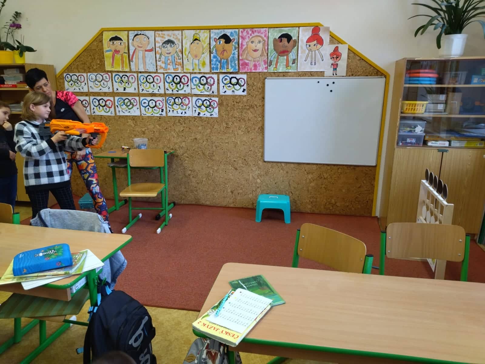 Během celého týdne si žáci prvního stupně užívali aktivit vztahujících se k olympijským hrám. Stříleli na terče, užili si "suchý" trénink krasobruslařů, mířili na cíl jako praví curlingoví mistři. Malovali sportovce různými technikami.