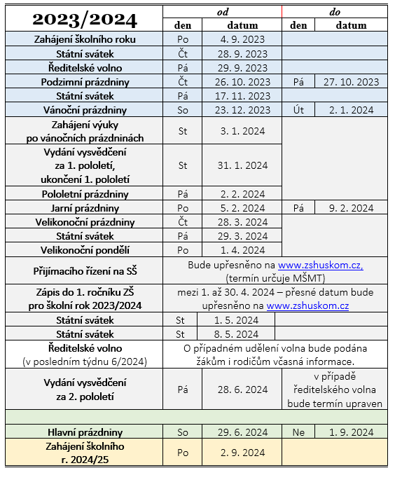 Uvedená data se mohou v průběhu školního roku měnit. Případné změny budou vždy včas uveřejněny na webu školy (v Aktualitách) a současně prostřednictvím Edookitu zaslány zákonným zástupcům žáků .