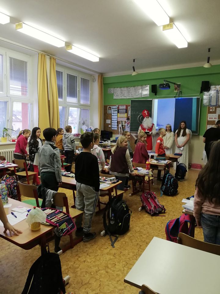 Mikuláš se svou partou zavítal i na naši školu. Navštívil především 1. a 2. třídy, zastavil se v 3.B, 5.B a několika třídách druhého stupně. Čertům to ale nedalo a nakoukli na zlobivce i do dalších tříd.