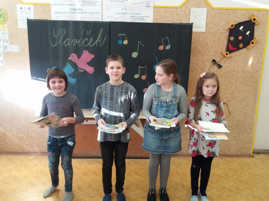 V pondělí 27. 11. proběhlo na 1. stupni školní kolo pěvecké soutěže "Slavíček". V rámci třídních kol byli vybráni nejlepší zpěváci, kteří zastupovali jednotlivé třídy ve třech kategoriích. Slavíčci dali porotě nelehký úkol - vybrat ty nejlepší. A jak to nakonec dopadlo?