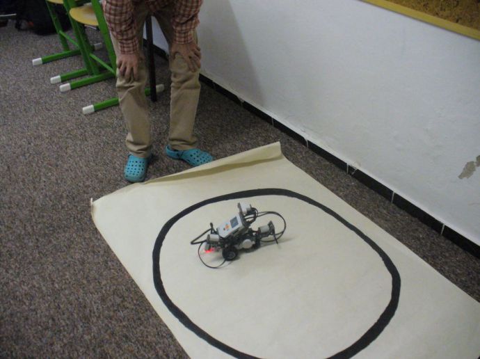 Třetí úkol, který rovněž žáci zvládli, byl naprogramovat robota tak, aby jezdil uvnitř kruhu,