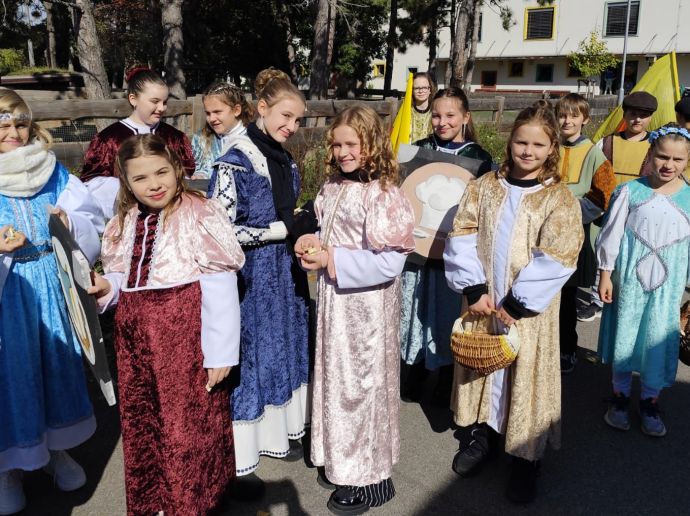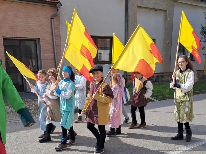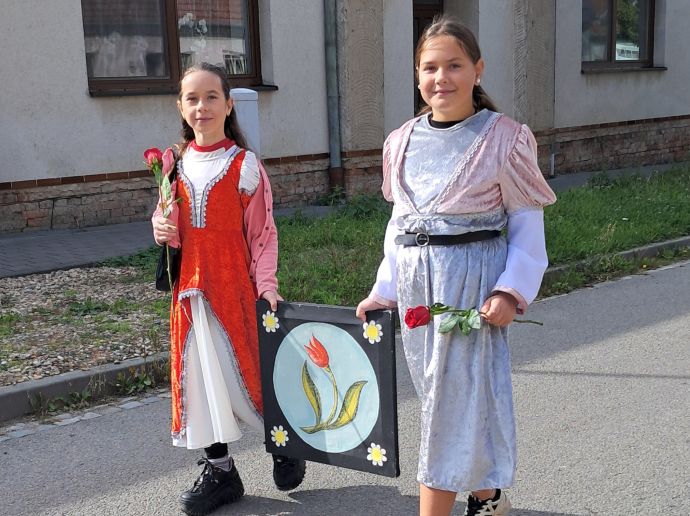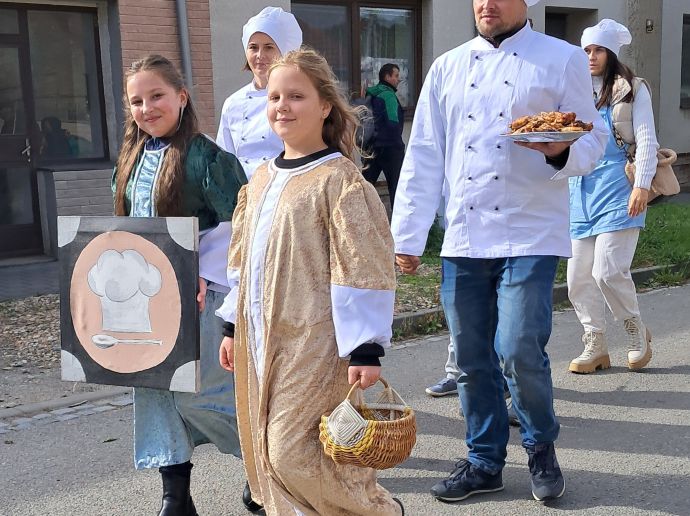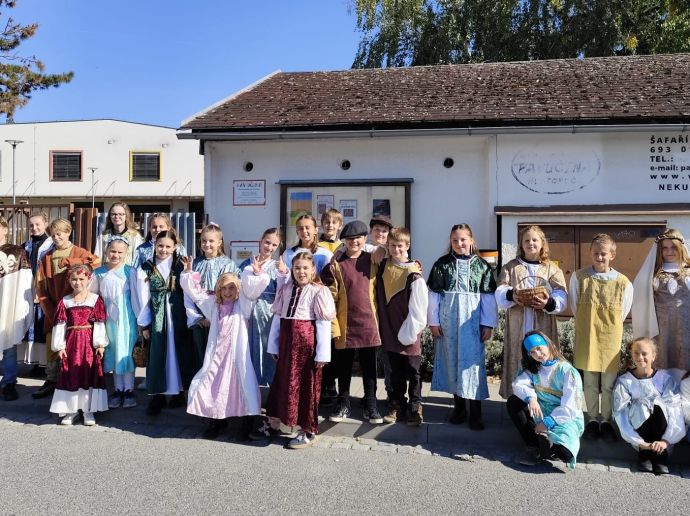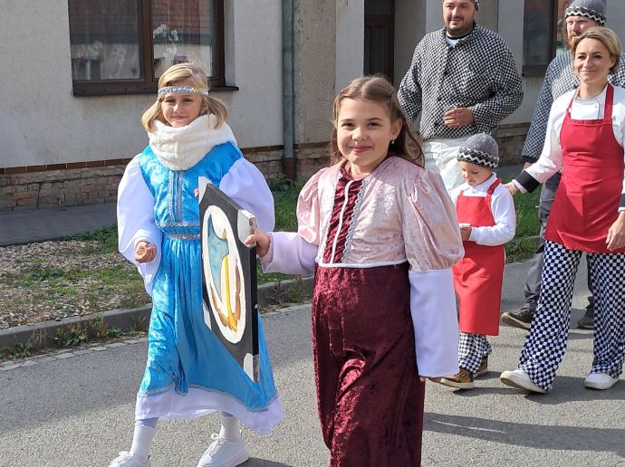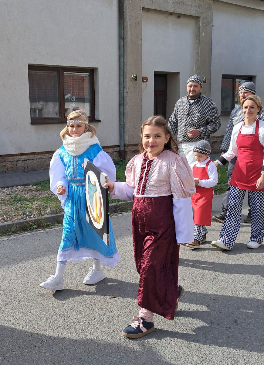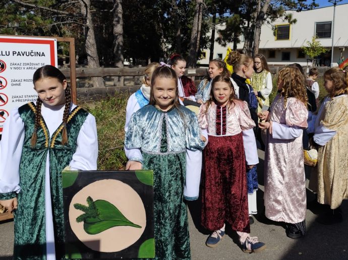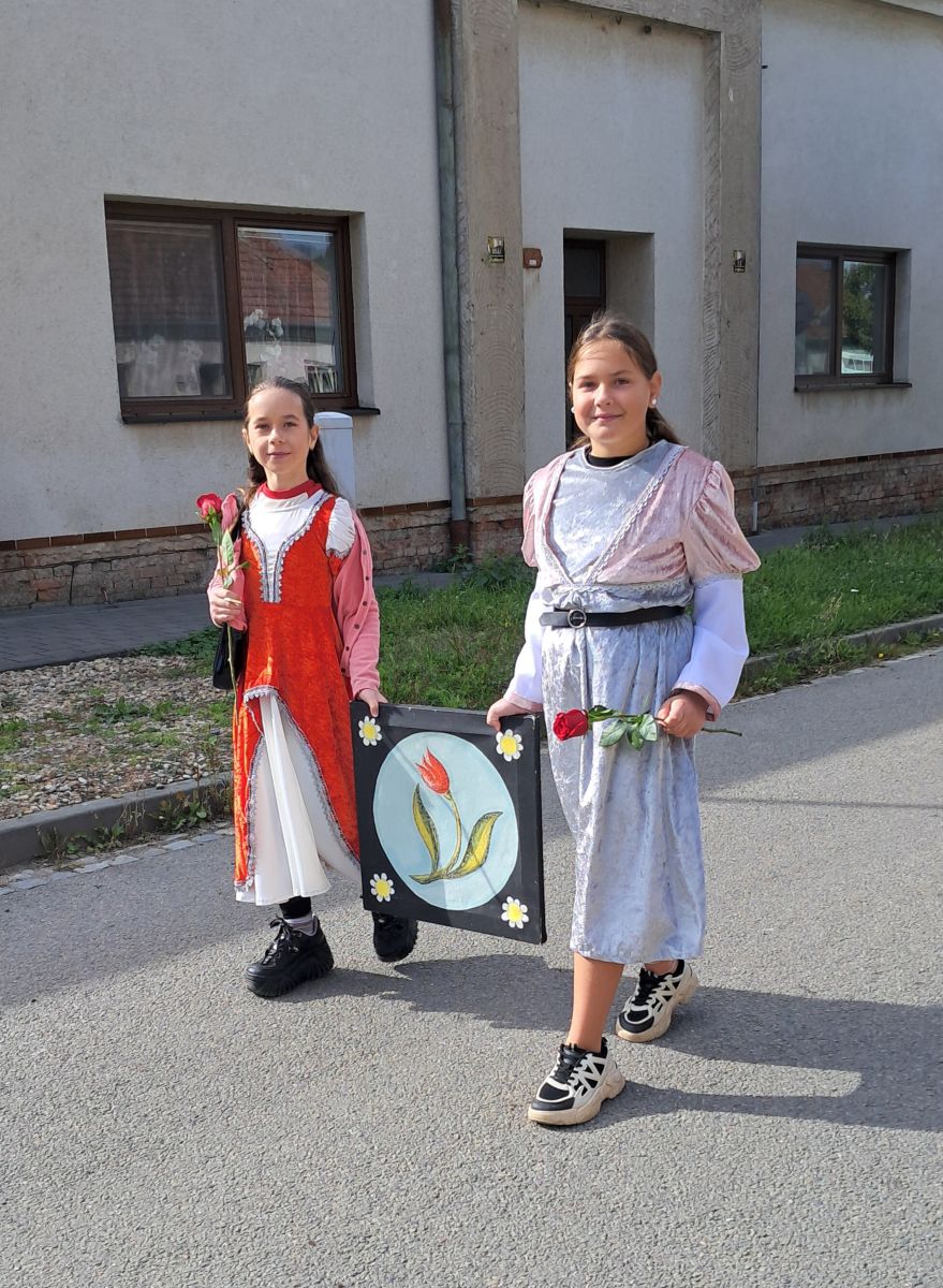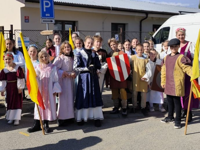Do sobotního tradičního průvodu na Burčákových slavnostech se zapojili žáci 4. a 5. tříd, kteří se do akce přihlásili. Děti si průvod užily s úsměvem, mávaly přihlížejícím divákům a měly radost z toho, že mohly jít ve slavnostních kostýmech.