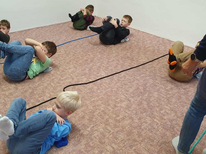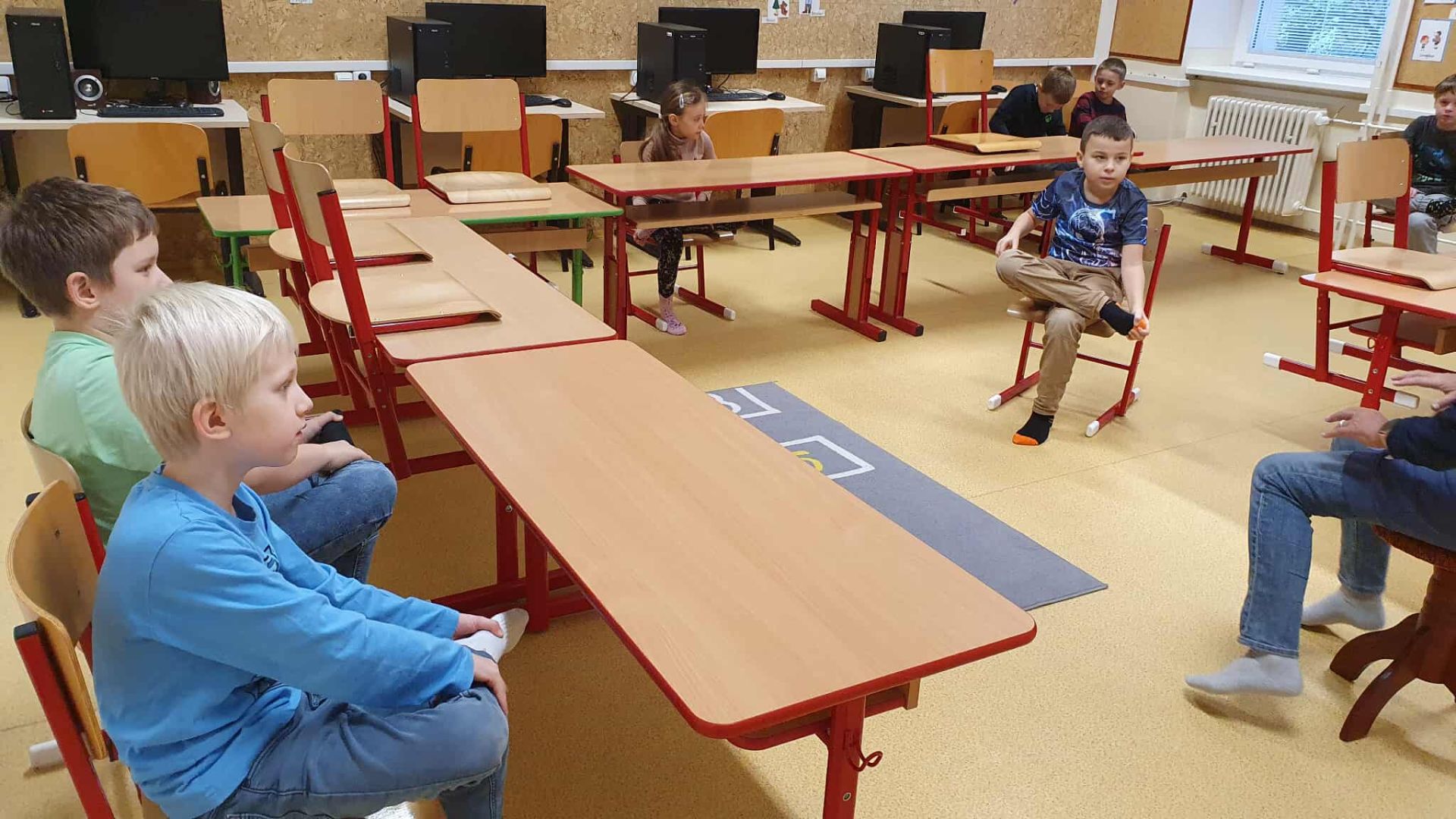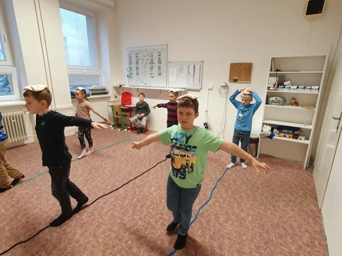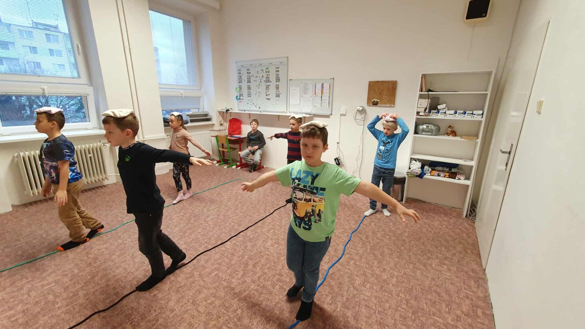 S žáky 2. ročníku každé ráno od 7:30 cvičíme neuro-vývojovou stimulaci