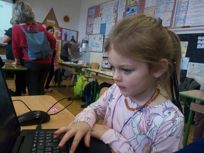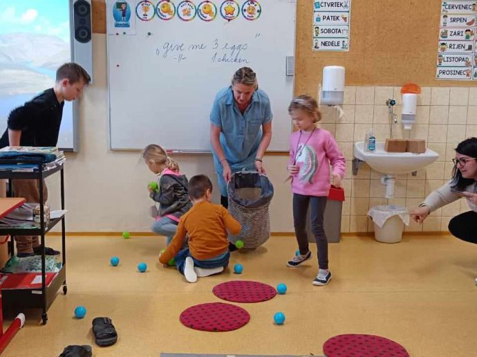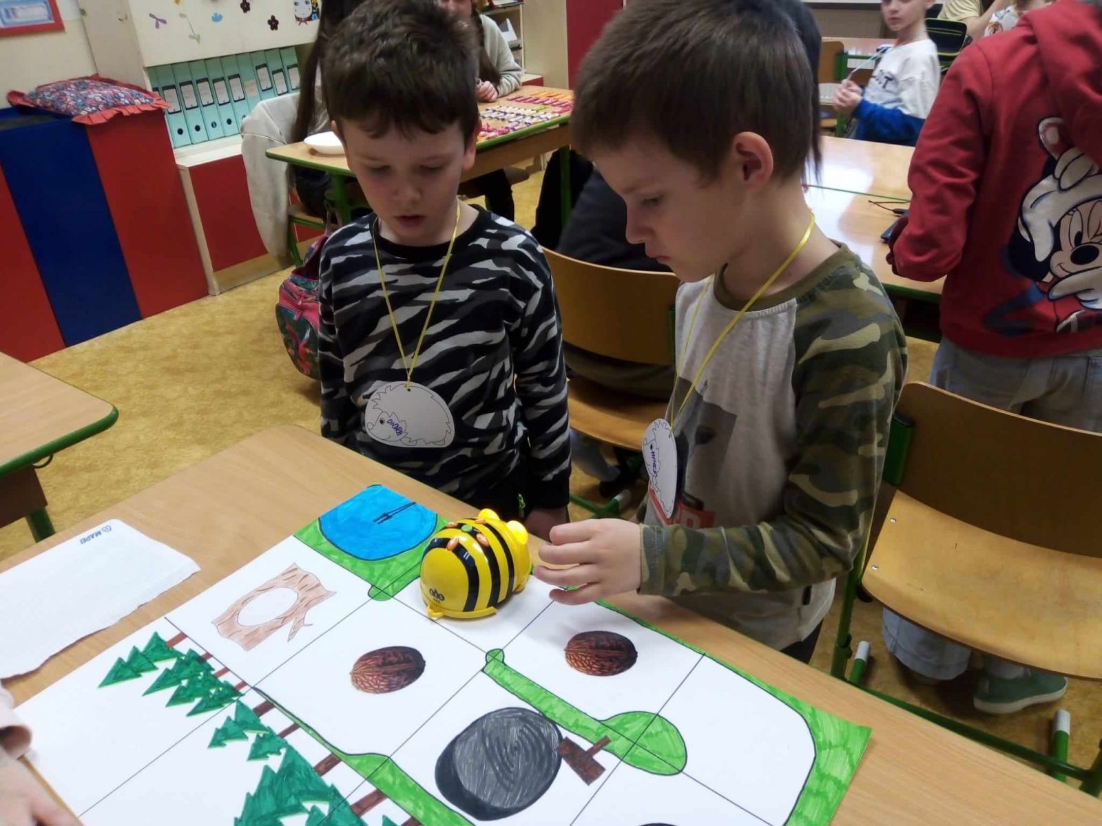 Pozdravili se s prvňáčky a pak už šup na čtyři stanoviště plná záludných úkolů. Počítání, dokončení pohádky, namalování dráhy ozobotovi, nastavení beebota, anglické barvy a písnička, prolézačky či hod na cíl. Většinu zvládli bravurně a zaslouží si velkou pochvalu.