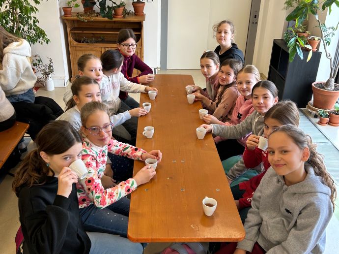 Během prohlídky se dozvěděly, jak se bylinky pěstují, suší a následně zpracovávají, aby z nich vznikly chutné a voňavé čajové směsi. Velkým zážitkem byla možnost ochutnat čaj, a dokonce si i namíchat vlastní podle své fantazie.