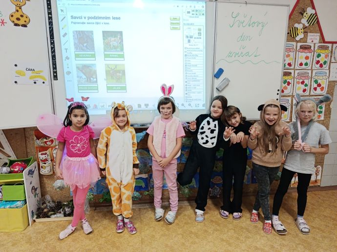 Žáci mohli přijít do školy v maskách zvířat nebo si přinést své oblíbené plyšáky. Zvířata je provázela po celý den napříč předměty – v pracovních činnostech vyráběli z papíru jejich napodobeniny, v českém jazyce si o nich četli, v tělesné výchově si zahráli zvířecí pexeso.
