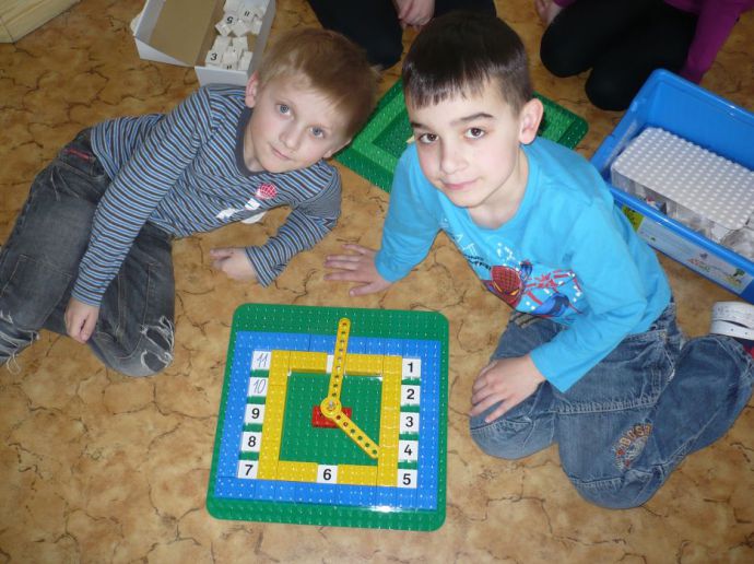 Čas se děti učí v hodinách prvouky. My jsme si celé učení opět zpestřili stavebnicemi Duplo®. Tentokrát si děti zahrály na návrháře hodin. Na interaktivní tabuli jsme se společně podívali na různé typy a druhy hodin, povídali jsme si, jaké hodiny mají doma a jaké se jim nejvíce líbí.
