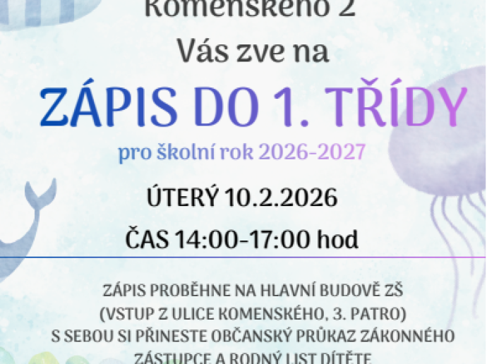Zápis žáka do 1. ročníku na školní rok 2026/27 12. 1. 2026